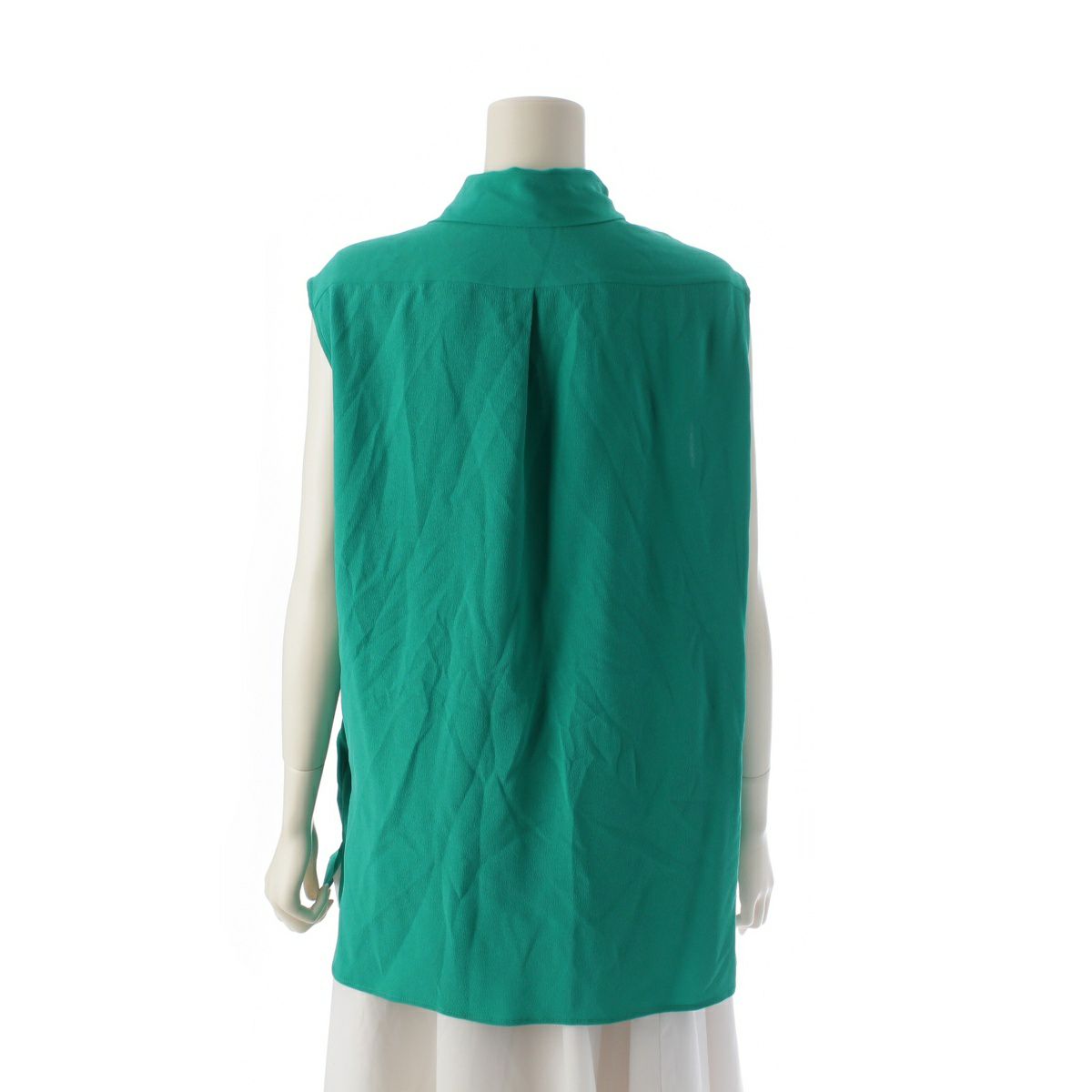 エルメス シルク 馬車 カレーシュ刺繍 ボウタイ ノースリーブ ブラウス シャツ トップス グリーン 36
