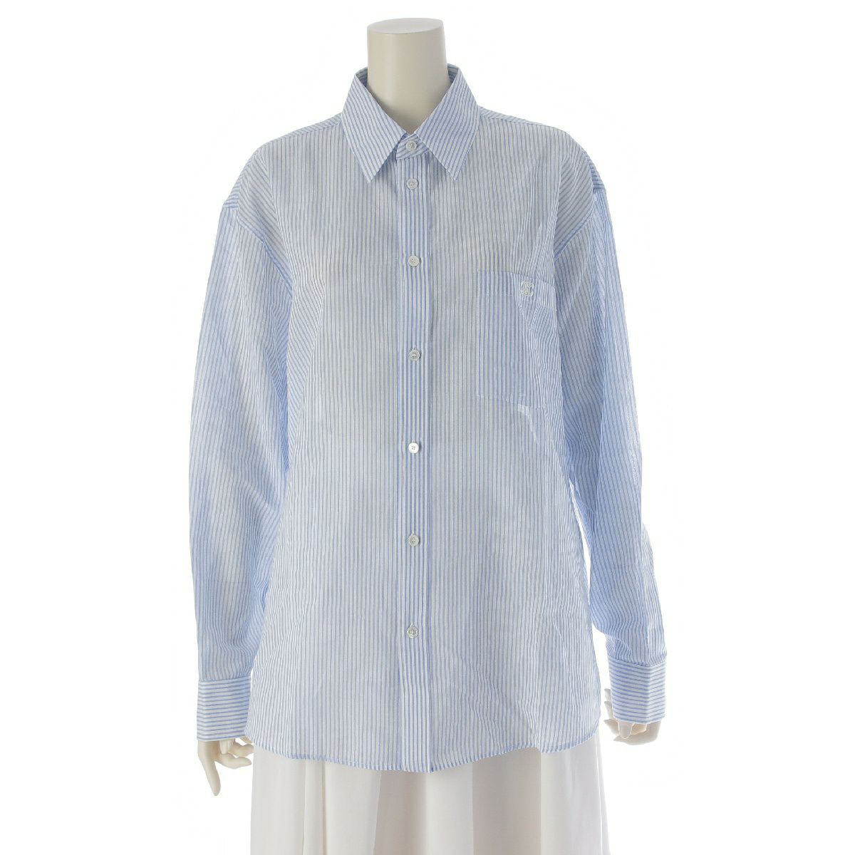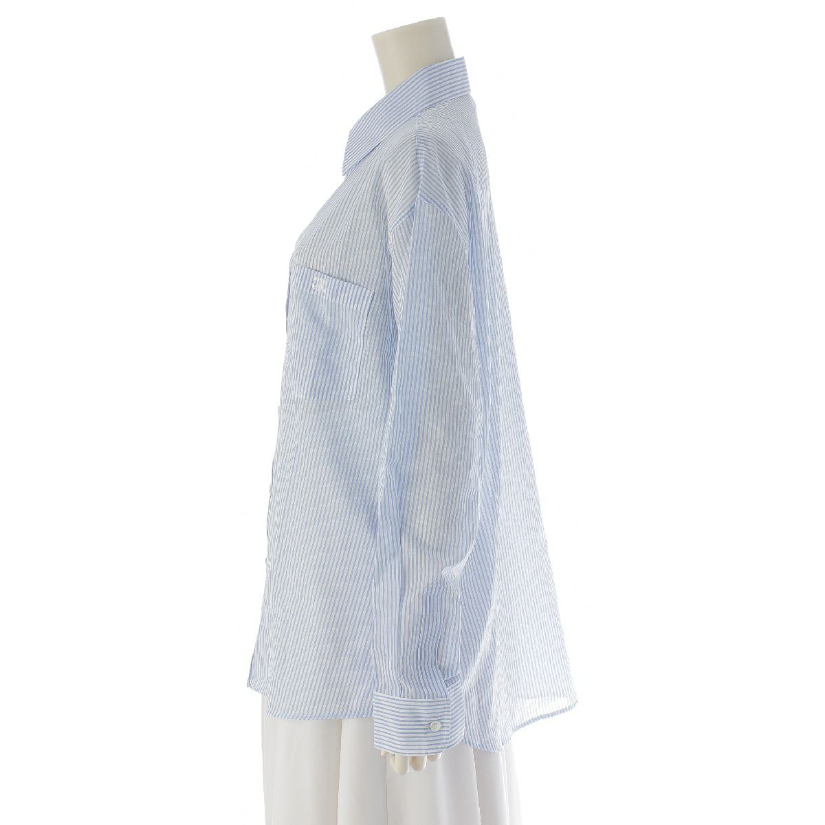 セリーヌ 24FW コットン トリオンフ刺繍 ストライプ オーバーサイズ 長袖シャツ トップス 2C749831W クレ ホワイト ブルー 38