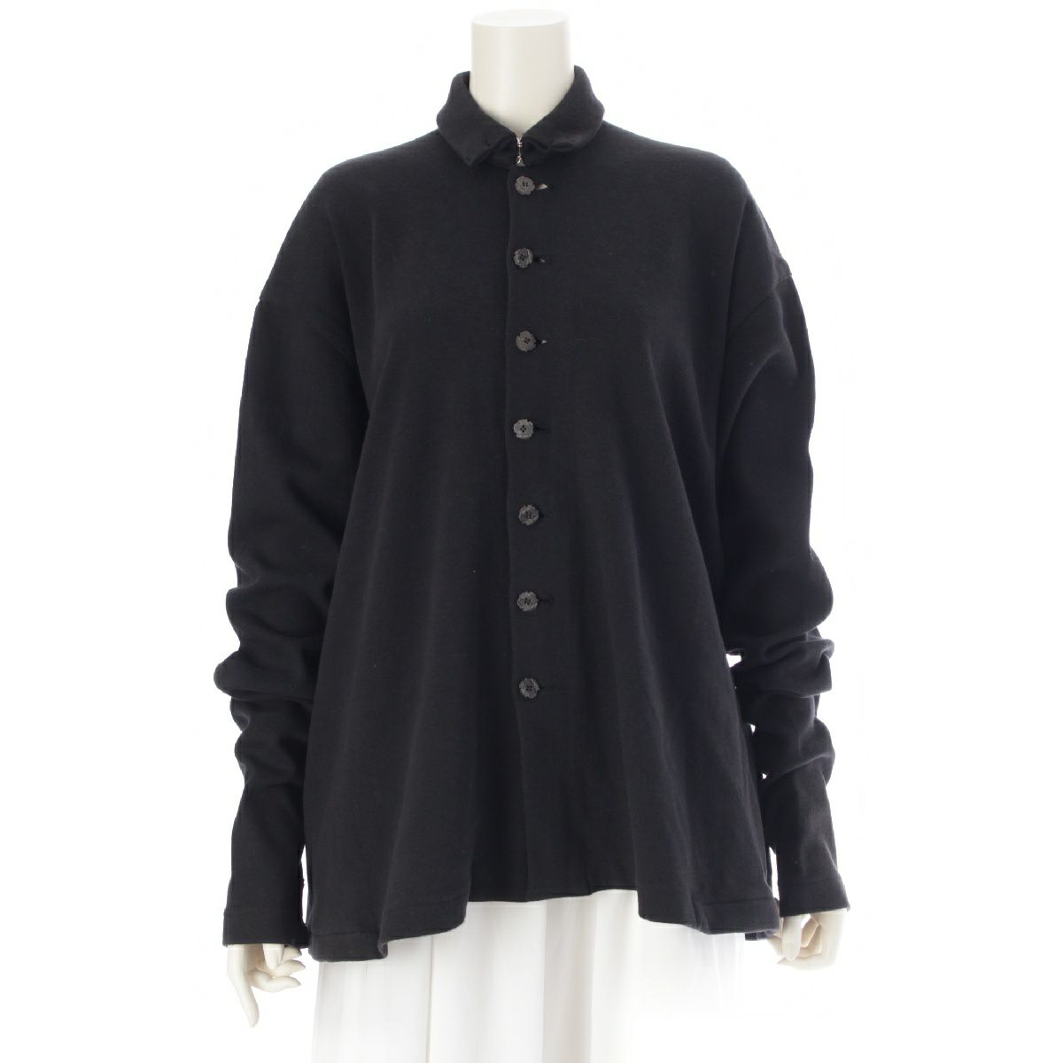 ヨウジヤマモト 80S コットン 丸文字タグ ウッドボタン オーバーサイズシャツジャケット 長袖シャツ トップス ブラック M