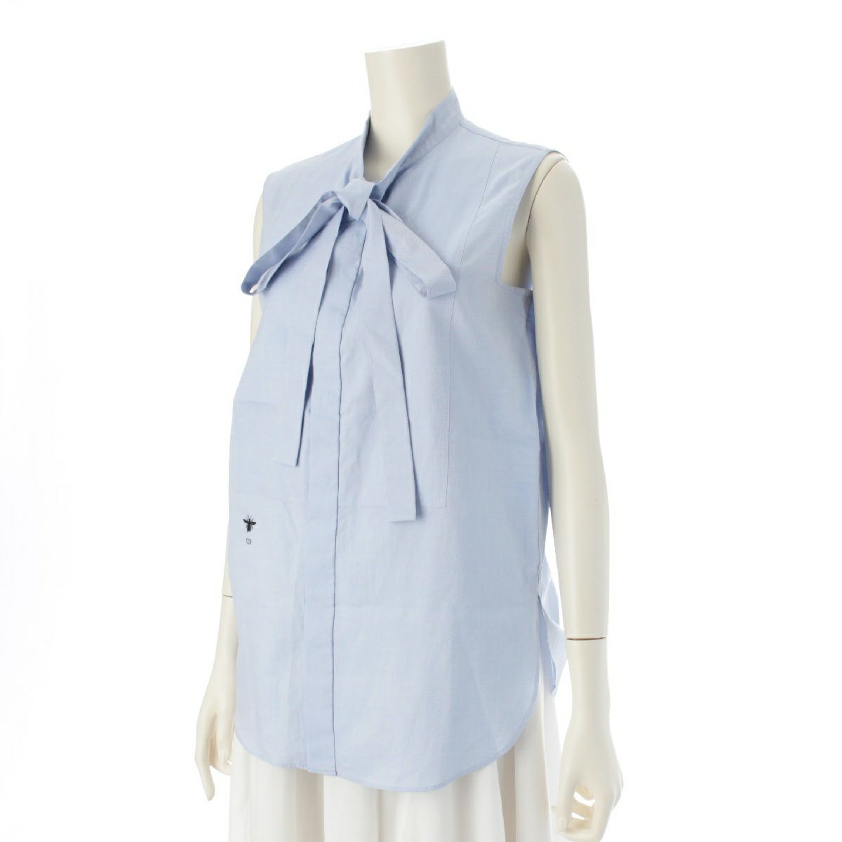 クリスチャンディオール コットン Bee刺繍 タイ ノースリーブ ブラウス シャツ トップス 7H21527L1356 ライトブルー 36