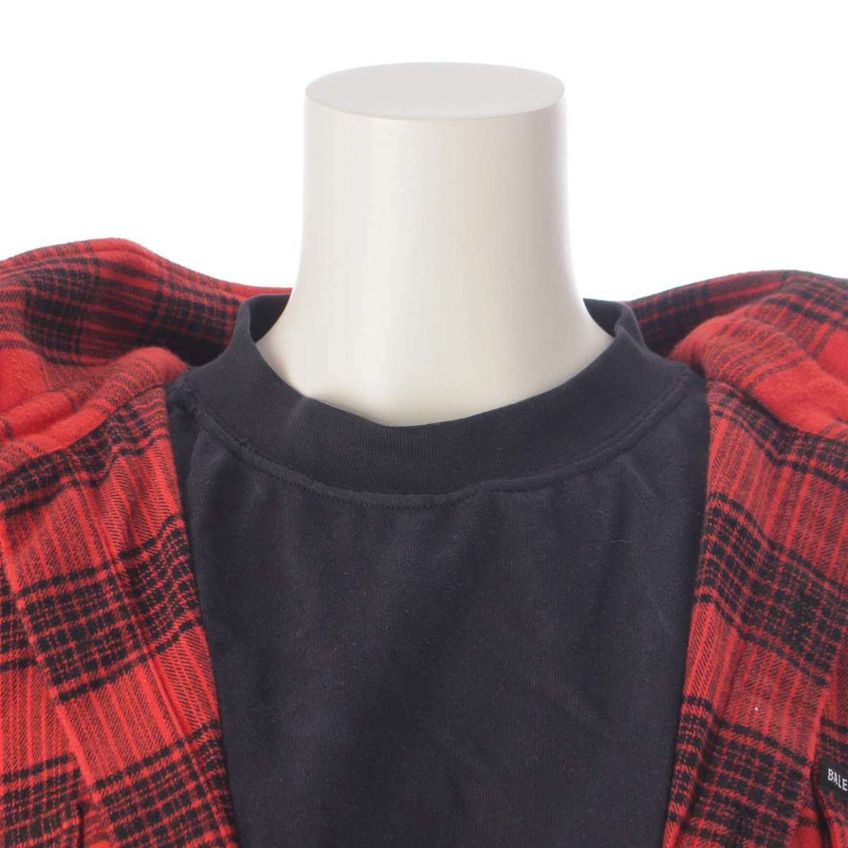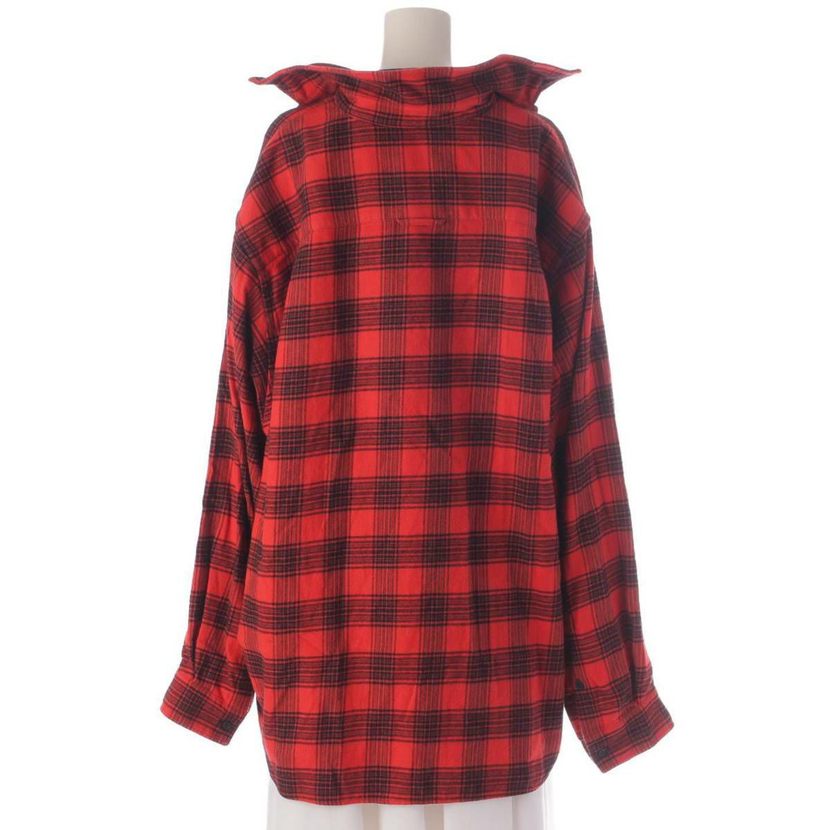 バレンシアガ 22SS トロンプルイユ チェック コットン シャツ 699371 ブラック×レッド 1