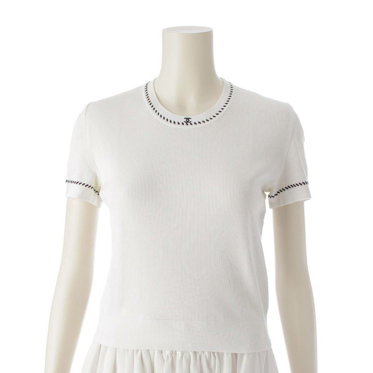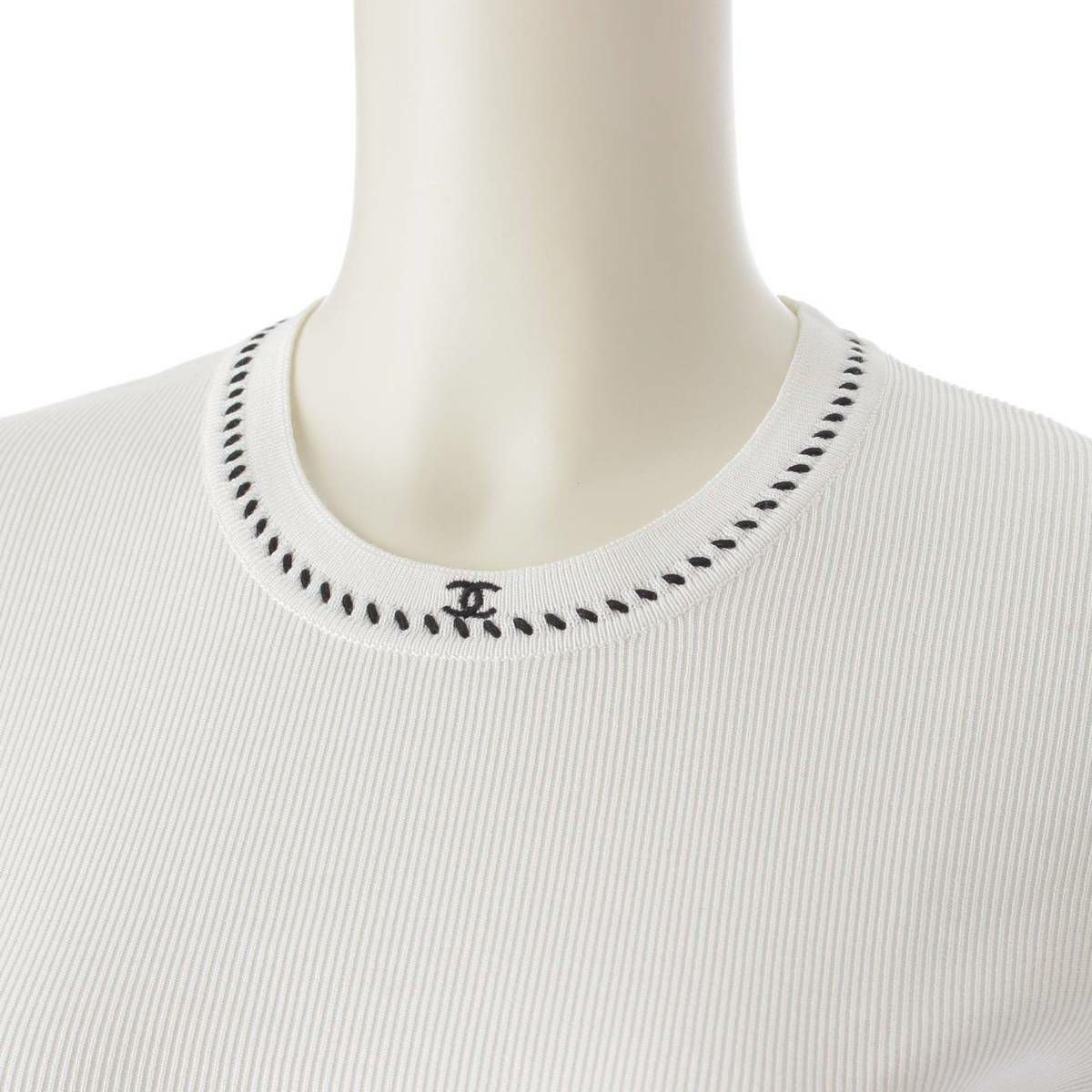シャネル 96P ココマーク刺繍 コットン 半袖 ニット トップス チビTシャツ P06574 ホワイト 42