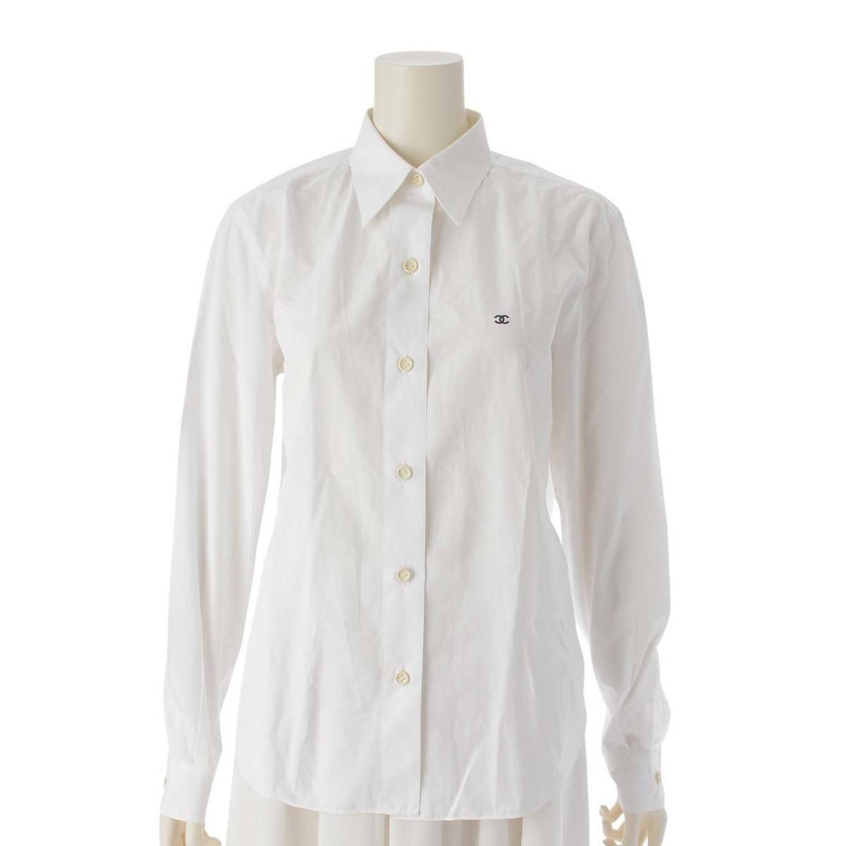 シャネル ココマーク刺繍 ボタン 長袖シャツ ブラウス トップス ホワイト