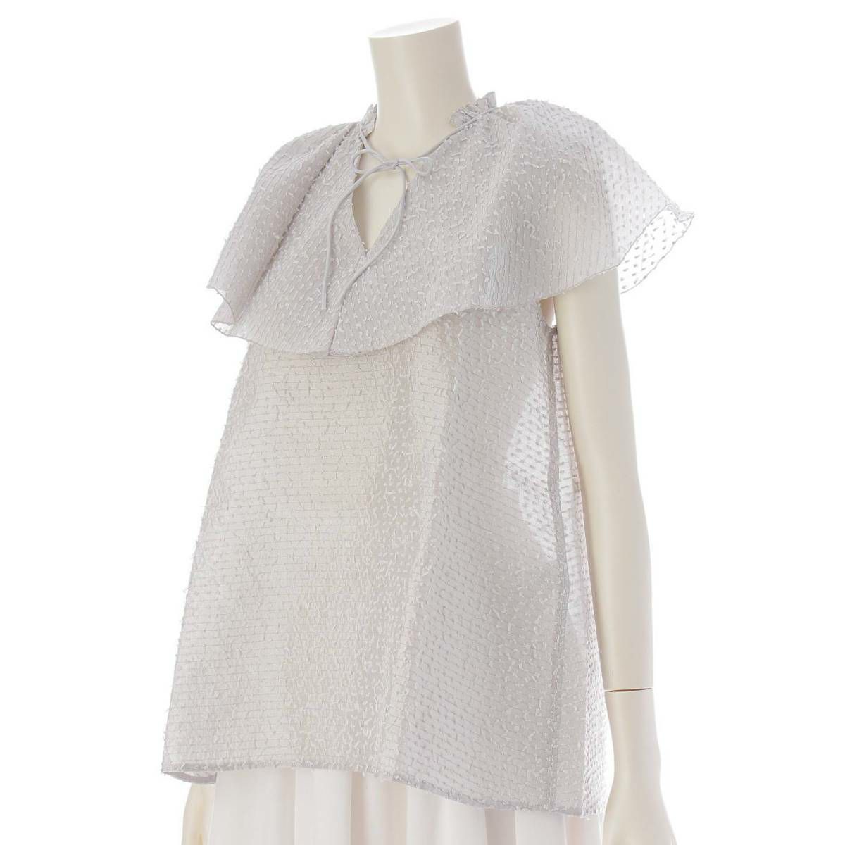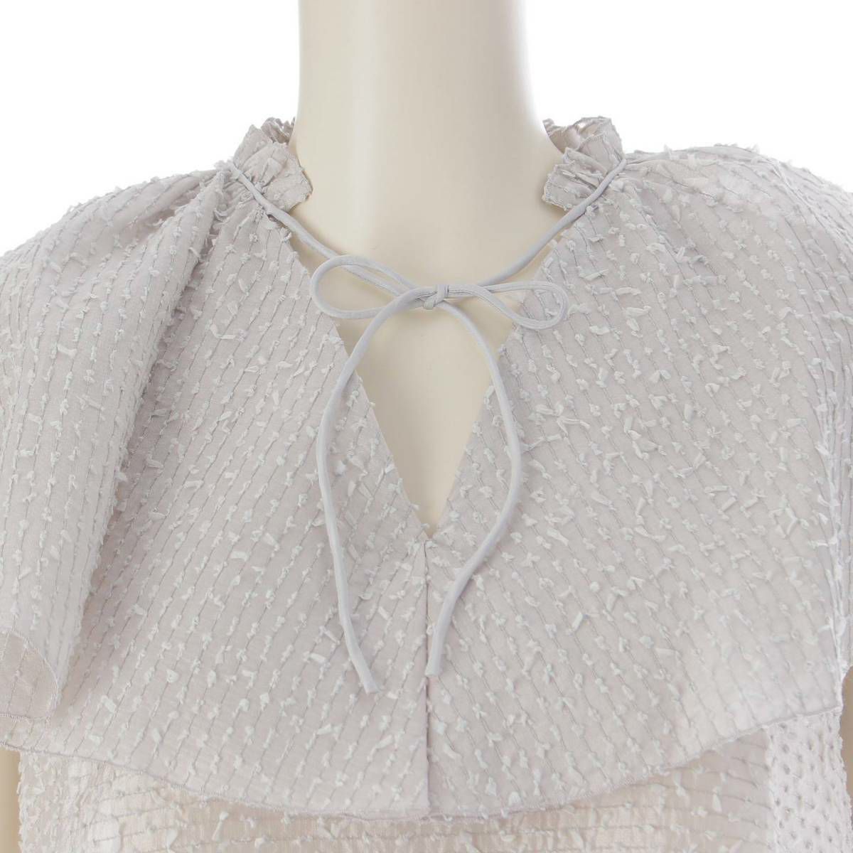 ドゥロワー DRAWER オーガンボーダーラッフルカラー シルク×ナイロン ブラウス グレー 36