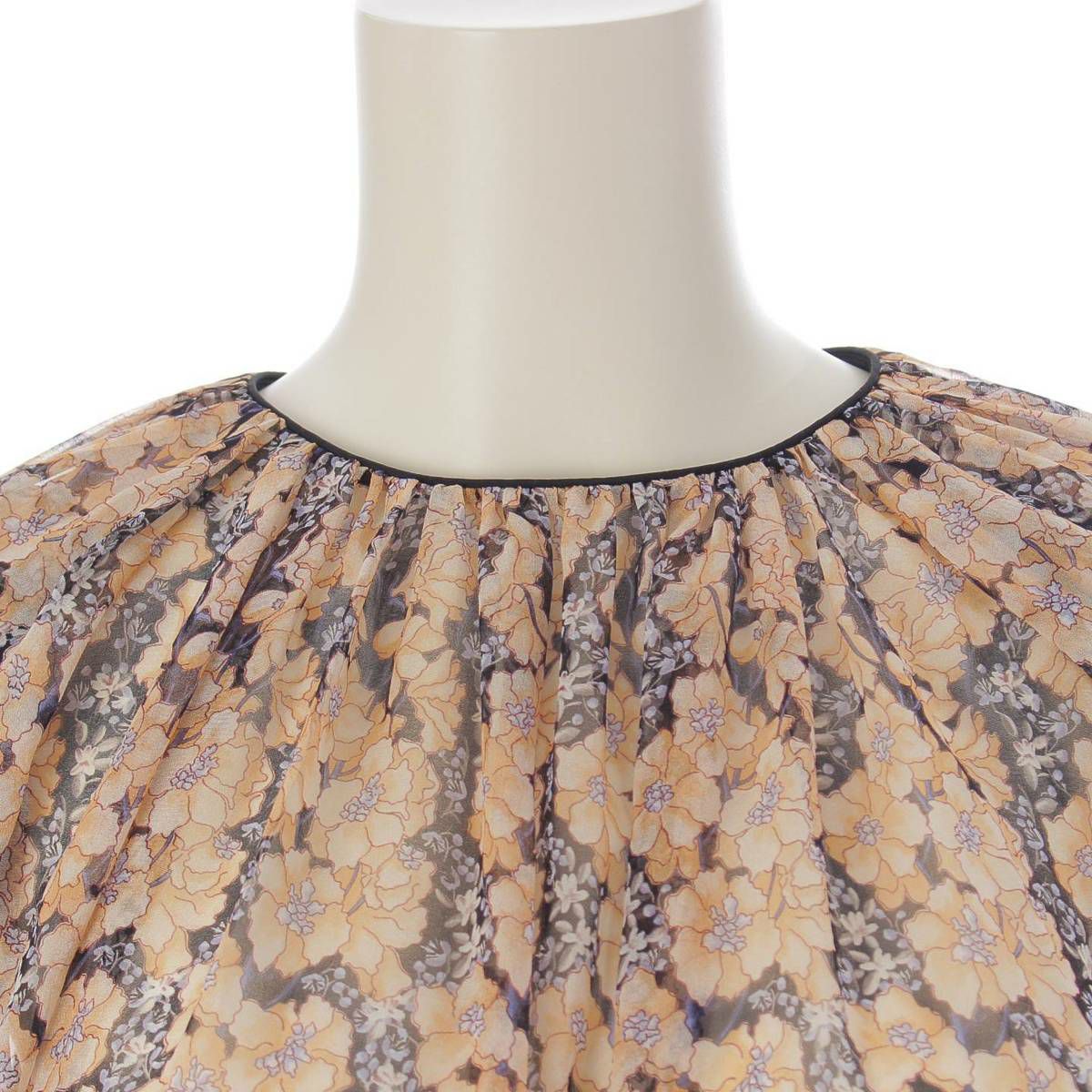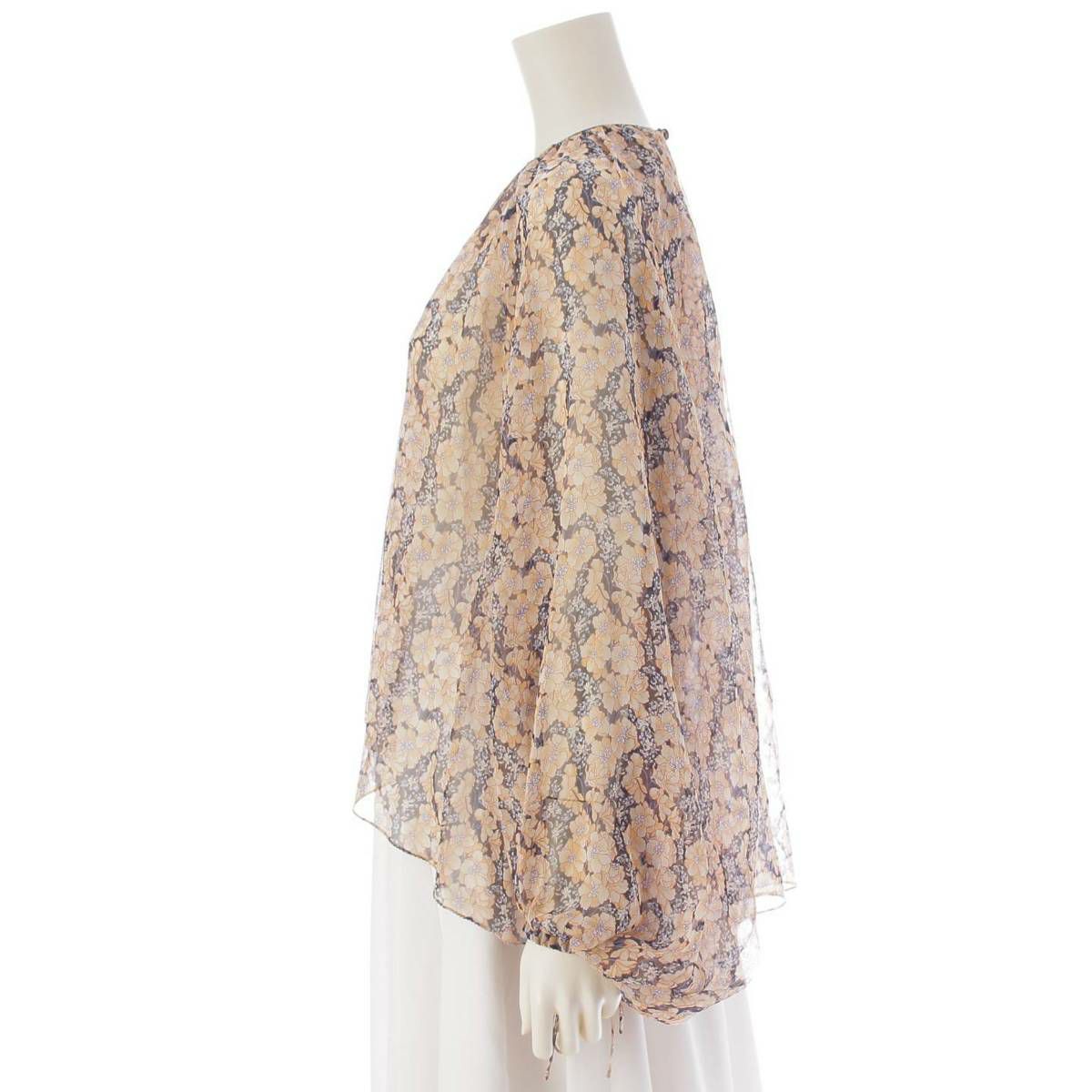 ドゥロワー DRAWER バルーンスリーブ シルク シースルー プルオーバーブラウス ブラック×ベージュ 36