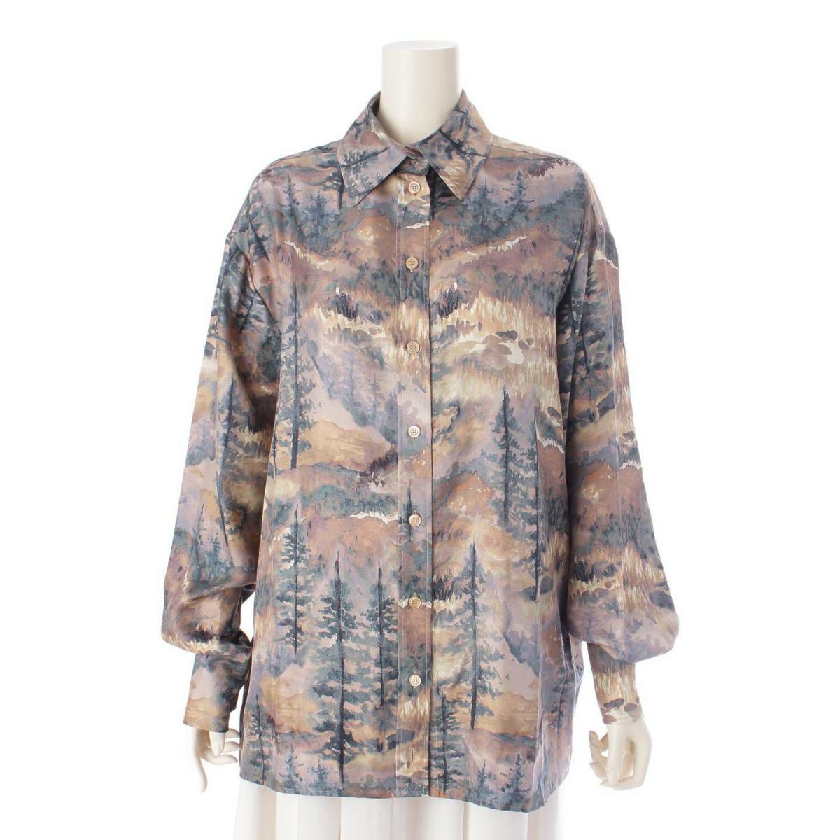グッチ 総柄 シルク 長袖 オーバーサイズ ブラウス シャツ トップス 671148 マルチカラー 40