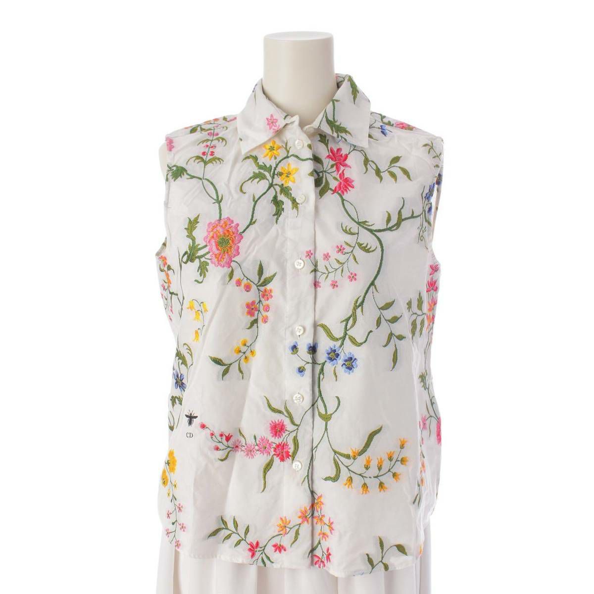 クリスチャンディオール Christian Dior 23SS Petites Fleurs ノースリーブ 花柄 ブラウス シャツ 321B60A3711 ホワイト 36