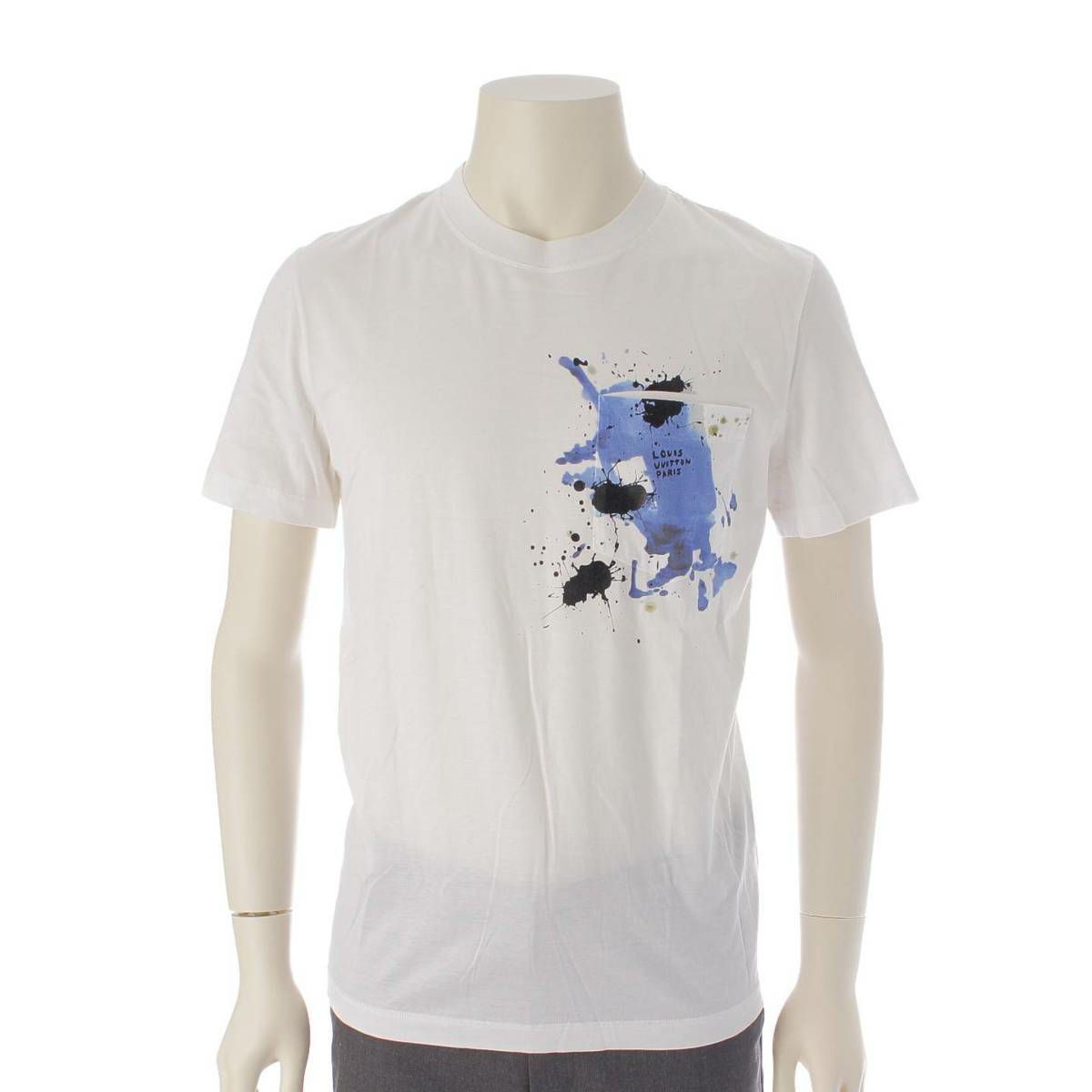 ルイヴィトン 17SS メンズ ペイントデザイン ポケット付き 半袖 Tシャツ RM172M ホワイト XS