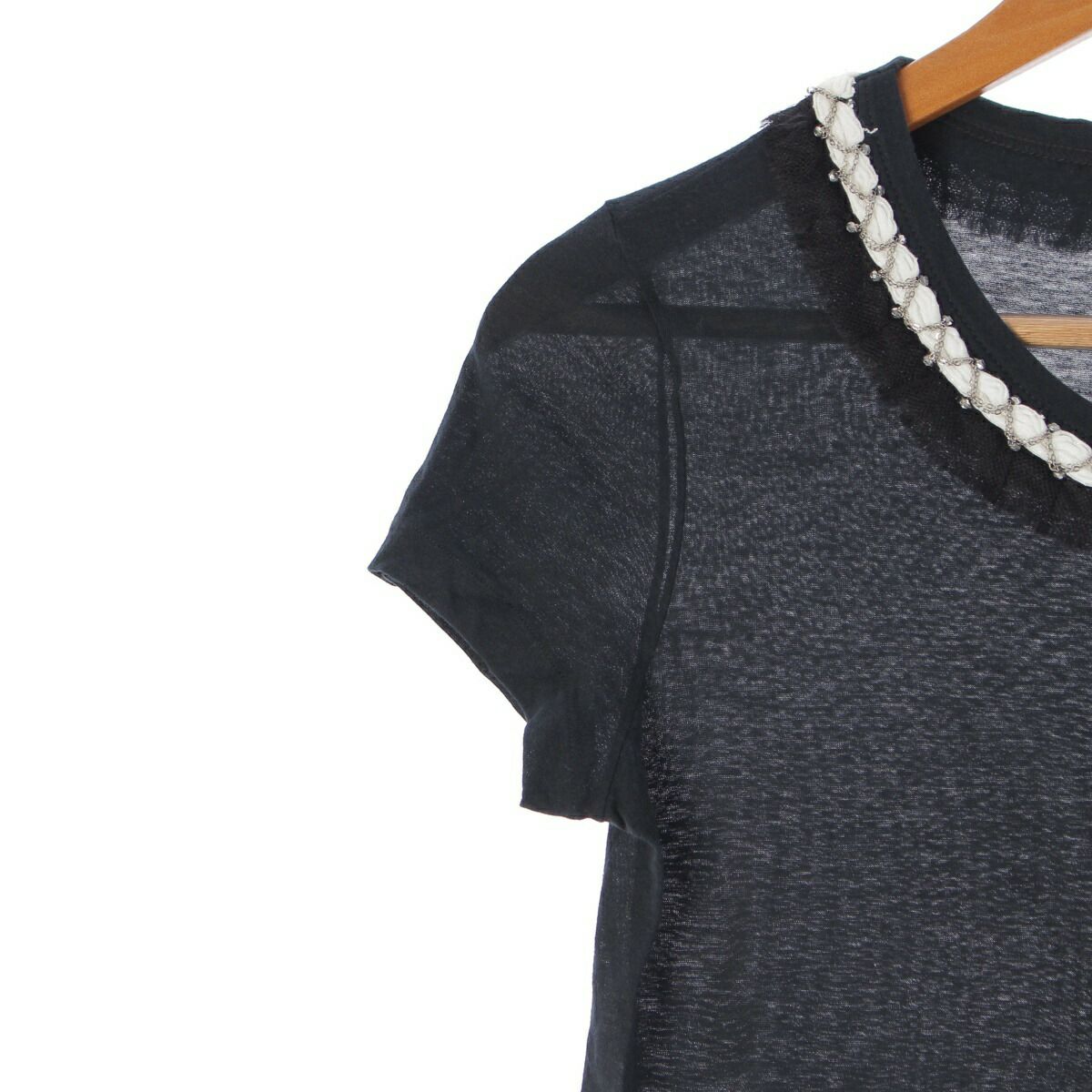 他の画像を見る CHANEL シャネル 06P チェーン ビジュー付 コットン カットソー Tシャツ トップス P28523 ネイビー 38【中古】【正規品保証】 在庫切れ お気に入りに登録する 当店特別価格 ¥ 34,100 税込 円 31,000円