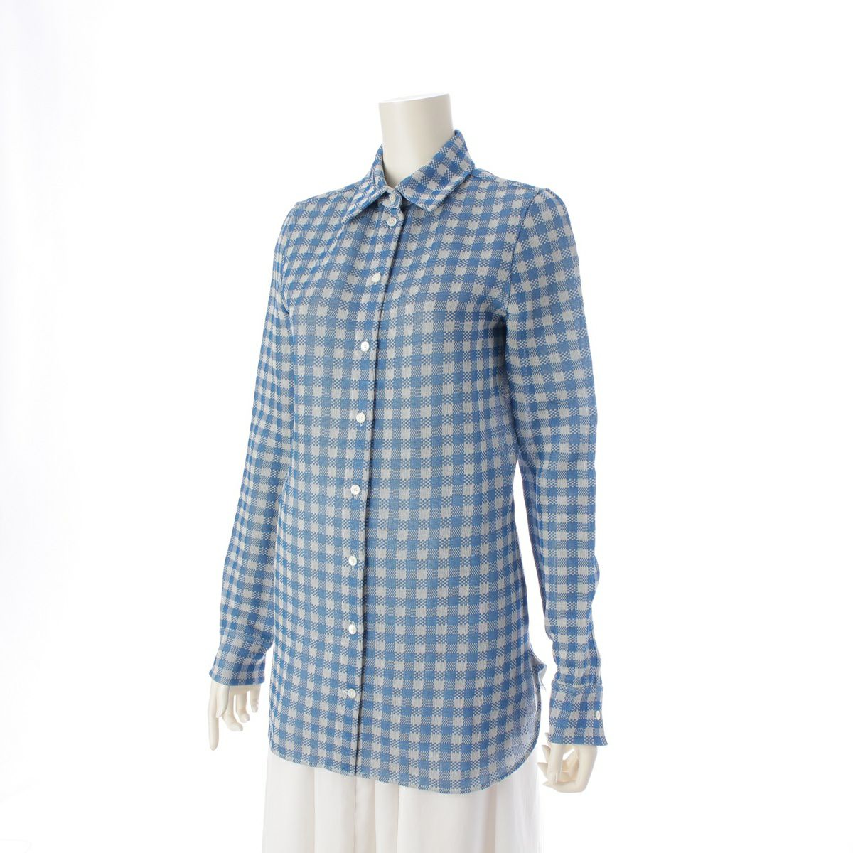 他の画像を見る CELINE セリーヌ シルク フィービー期 チェック柄 ブラウス シャツ トップス 2 0X64 ブルー×グレー 34 在庫切れ お気に入りに登録する 当店特別価格 ¥ 19,800 税込 円 18,000円