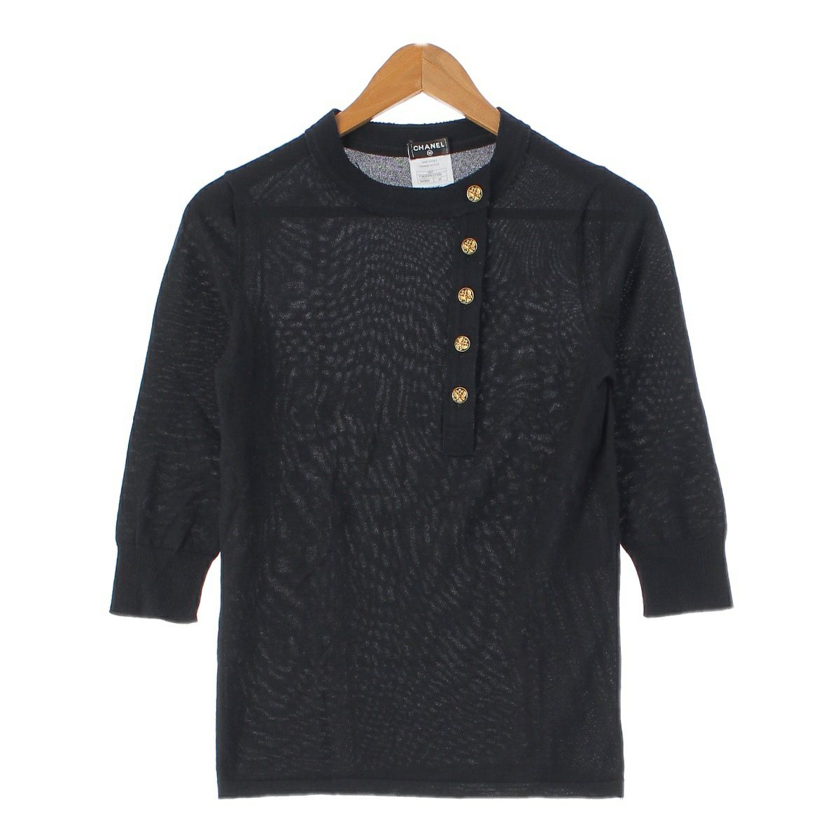 シャネル 09A カシミヤ シルク ココマーク 鳥ボタン 七分袖 ニット セーター トップス P36217 ブラック 36