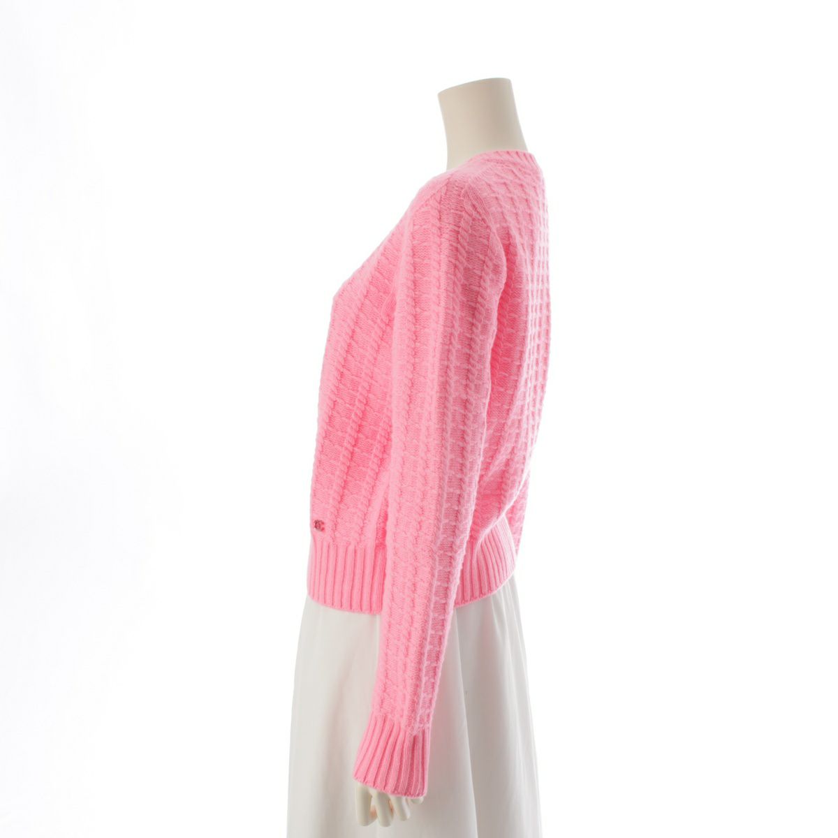 シャネル 23A ウール カシミヤ プルオーバー ココマーク ストーン ニット トップス セーター P75341 ピンク 38