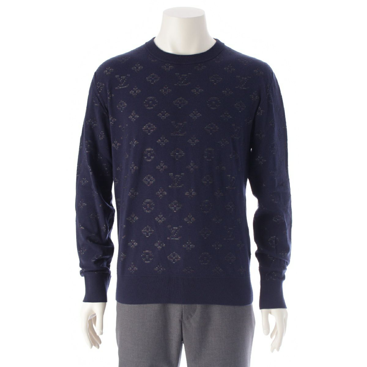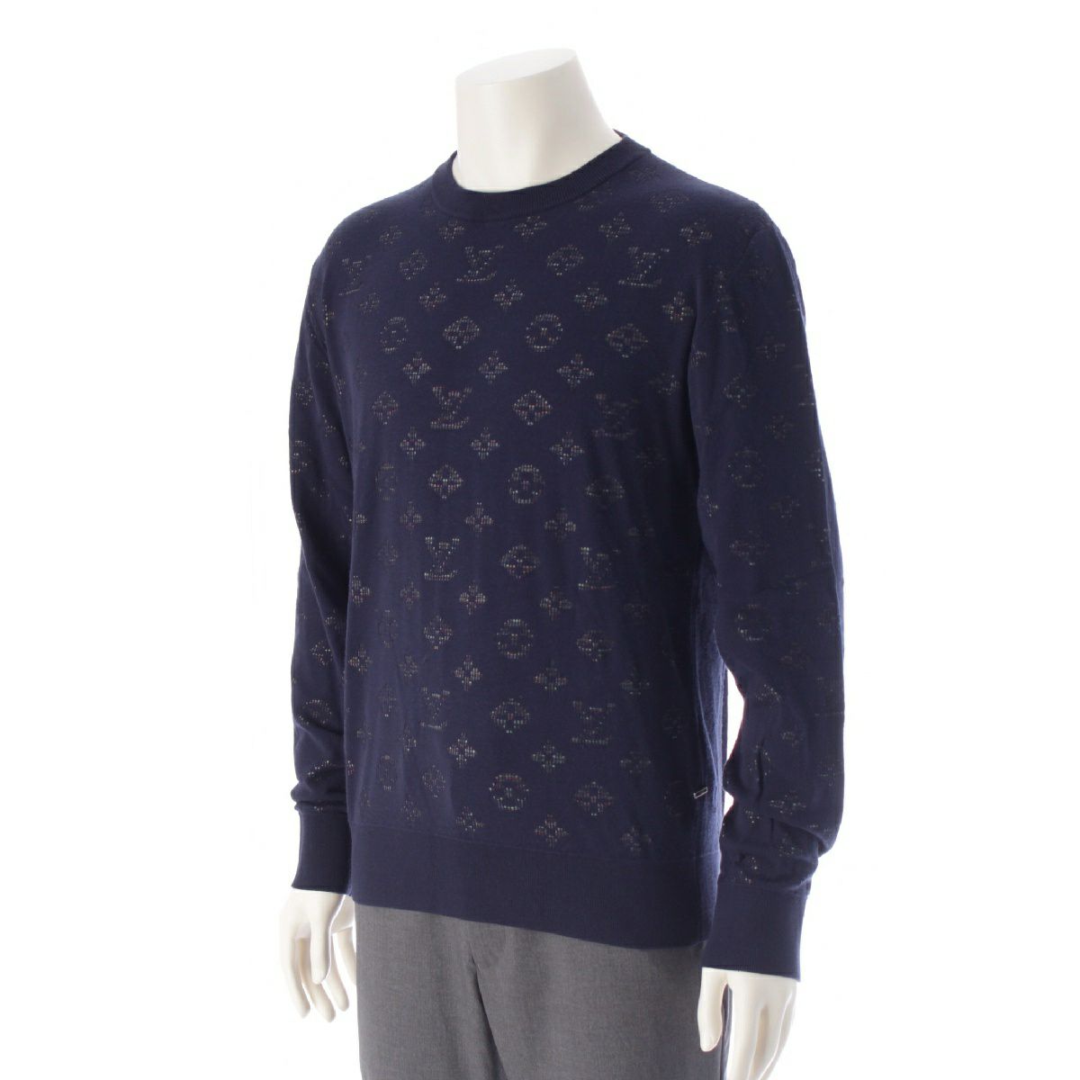 ルイヴィトン 20AW モノグラムドロップニードル 長袖 ニット セーター クルーネック トップス RM202Q TBV HIN44W ネイビー マルチカラー S