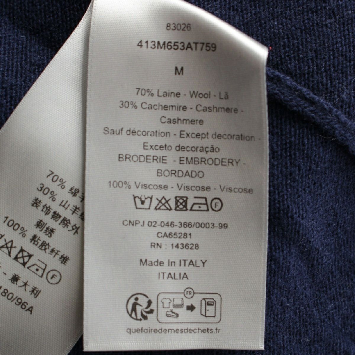 ディオール カシミヤ ウール ロゴ 1947 ニット 長袖 トップス 413M653AT759 ネイビー M