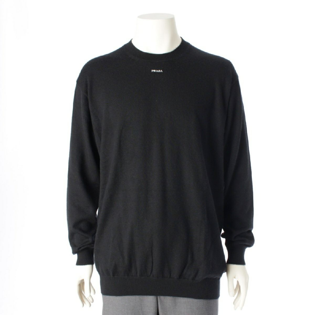 プラダ カシミヤ ロゴ刺繍 クールネック ニット セーター トップス UMB678 ブラック 48