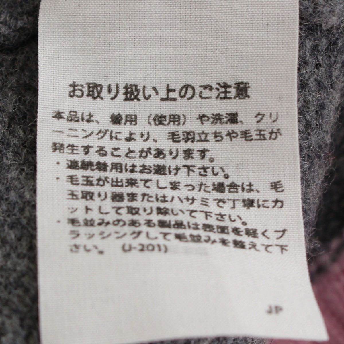ダメージ箇所: 表面に毛羽立ち/毛玉、柔軟剤のようなニオイ