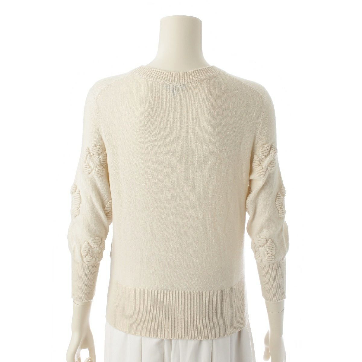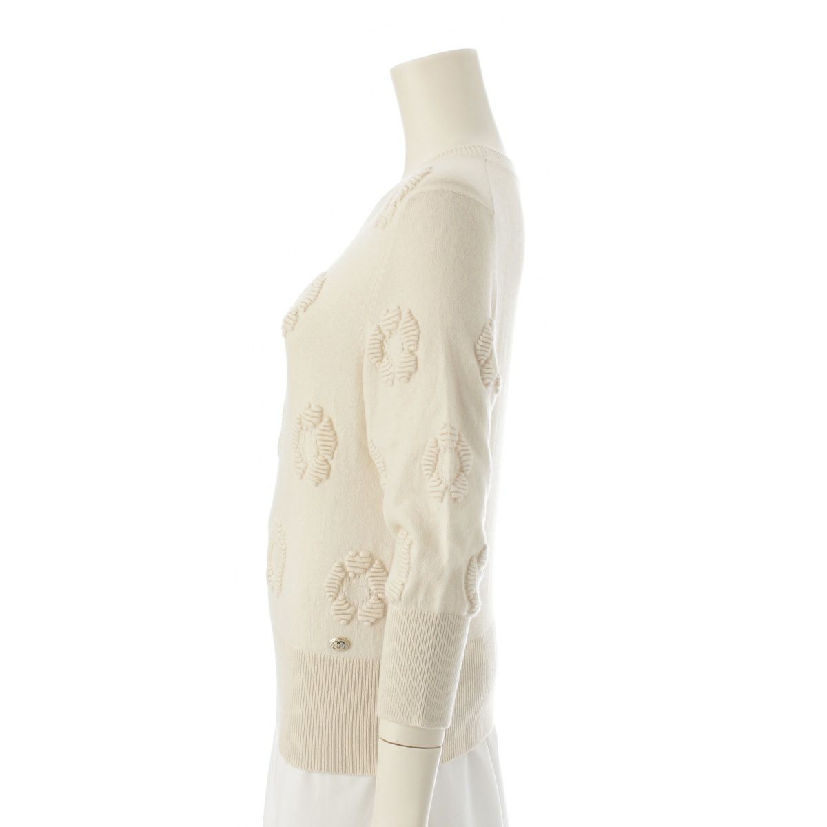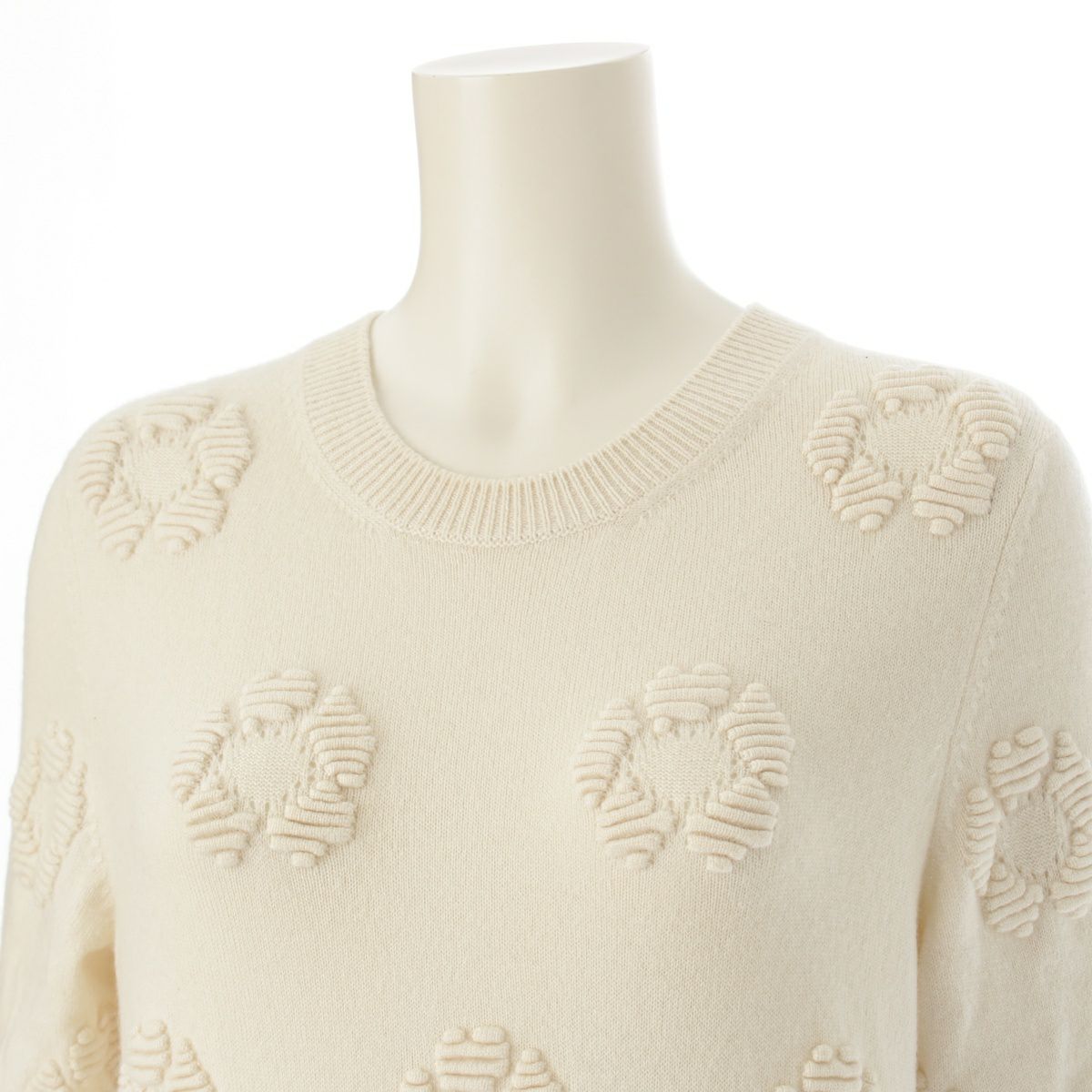 シャネル カシミヤ カメリア ジャガード ニット セーター P56231 ホワイト アイボリー 36