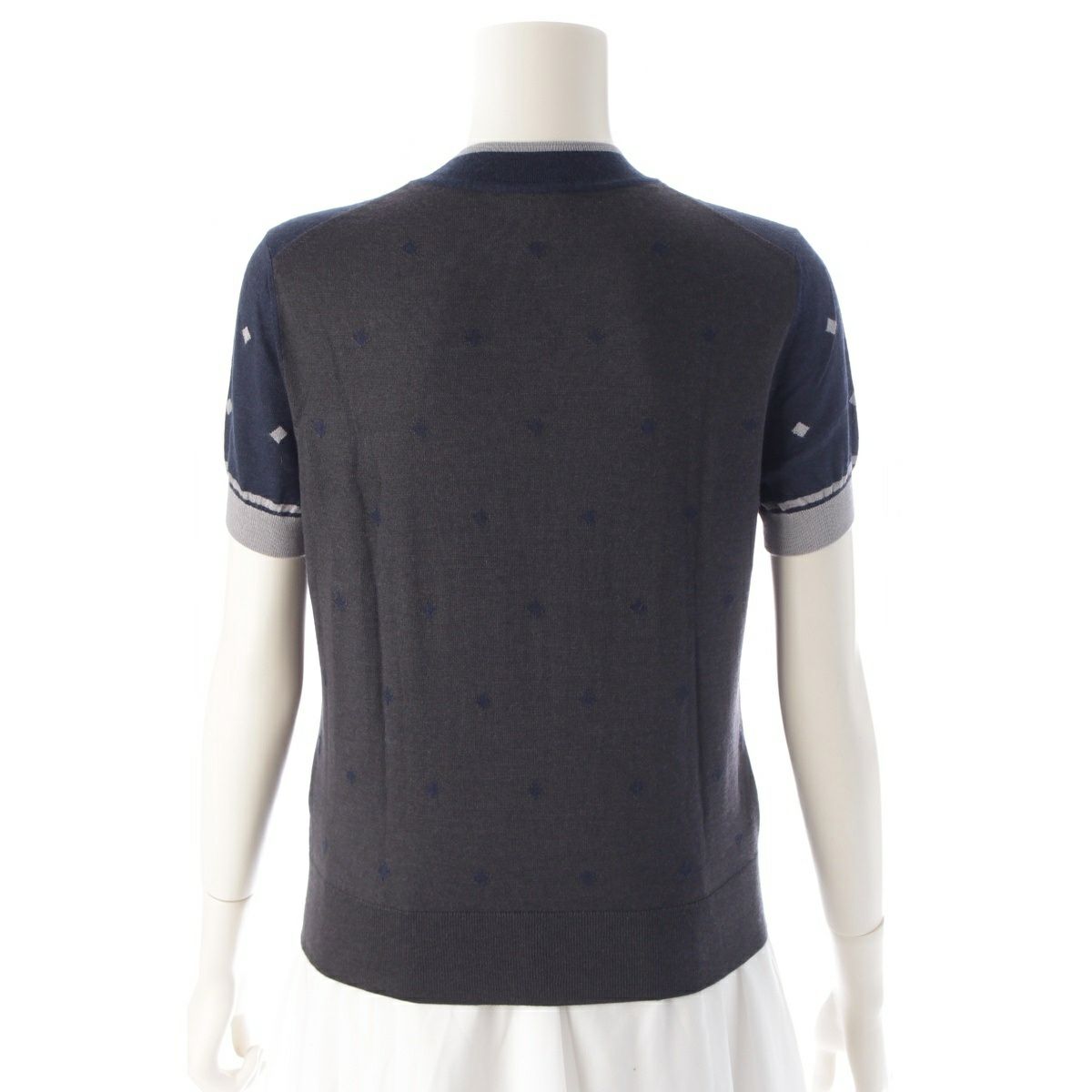 エルメス 22AW カシミヤ×シルク 宮廷の馬具 半袖 ニット セーター トップス 2H2622D8 ネイビー 40