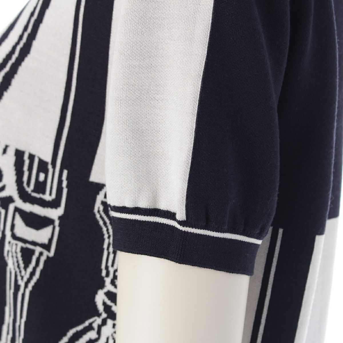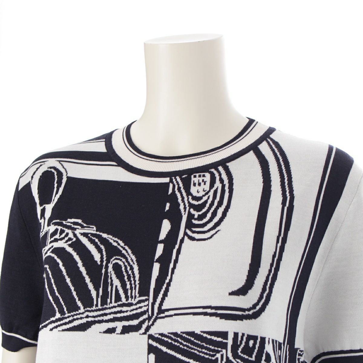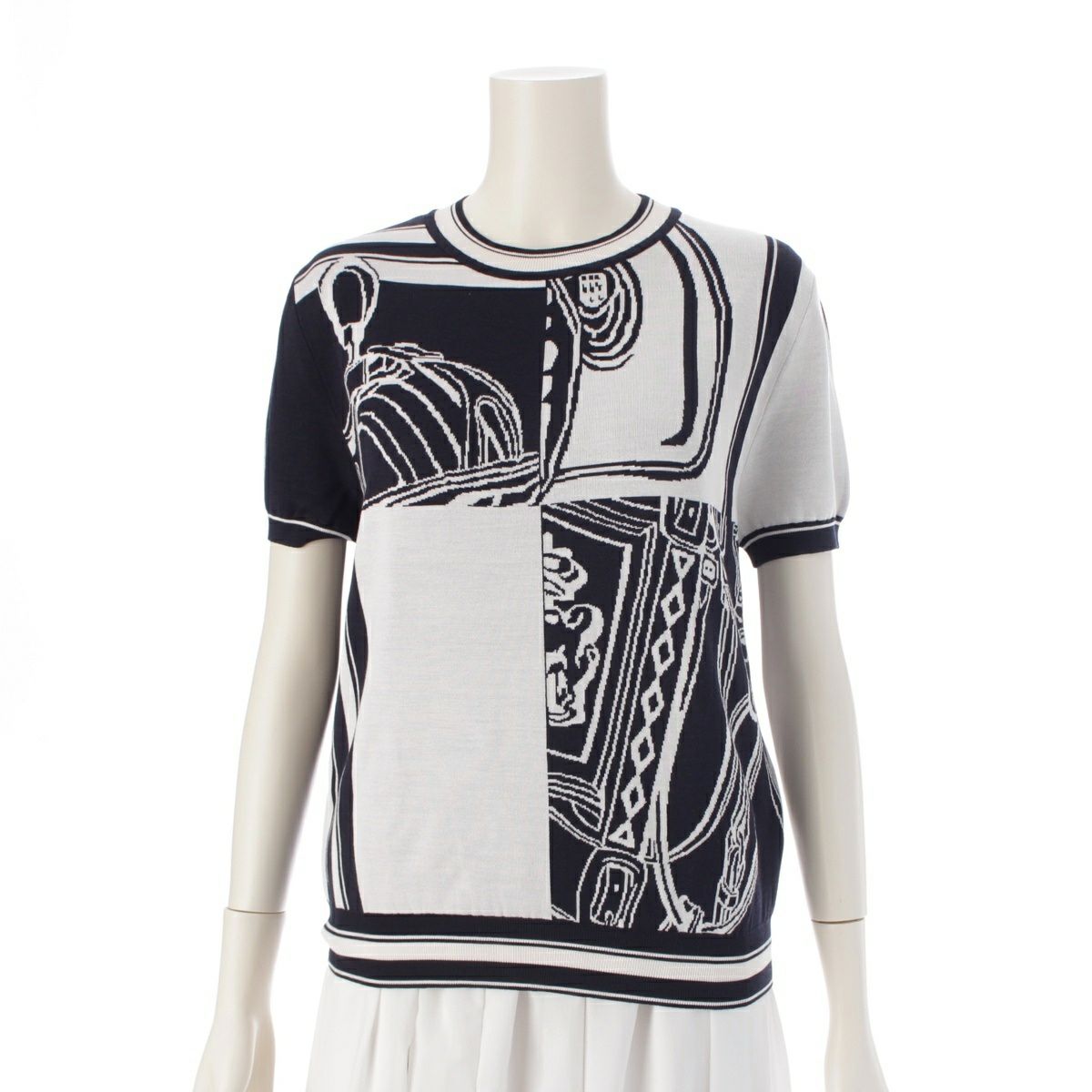 エルメス 24SS シルク×ナイロン ブリッド・ドゥ・ガラ 半袖 ニット トップス 46-7712 ブラック×ホワイト 38