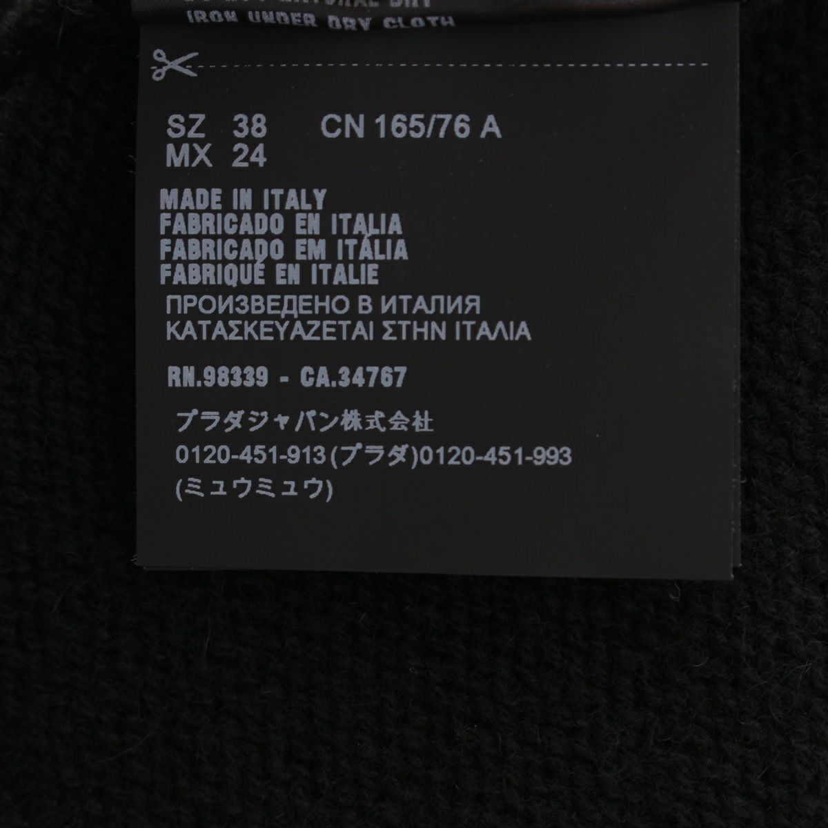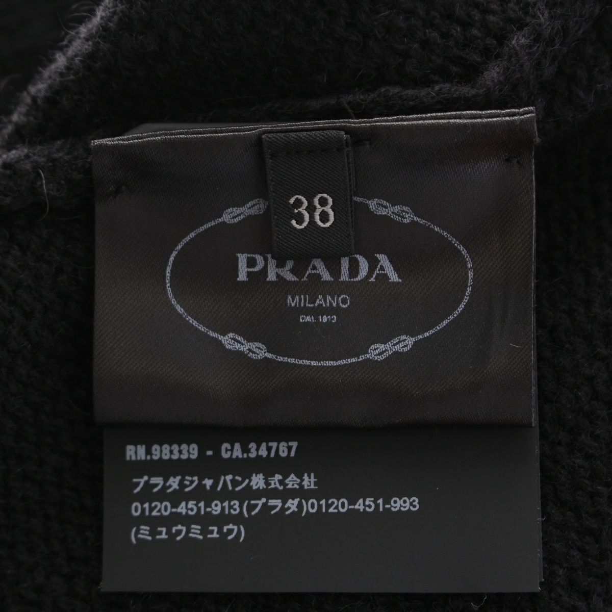 プラダ 2019年 カシミヤ トライアングルロゴ 変形 クロップド ニット トップス P26373 ブラック 38