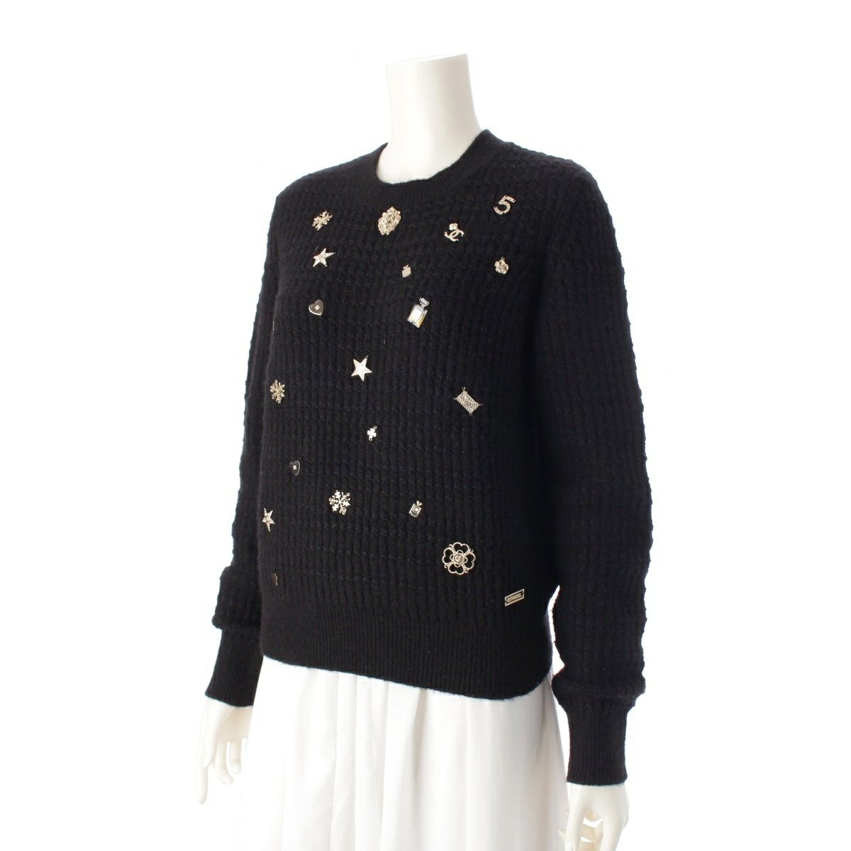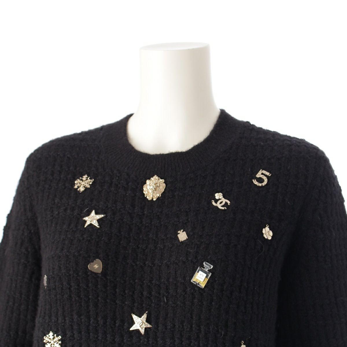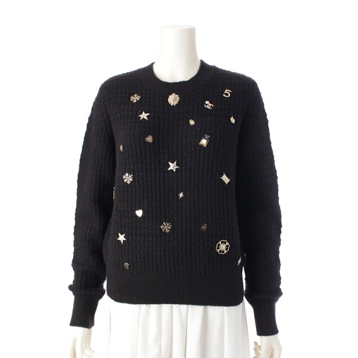 シャネル カシミヤ シルク混 マルチアイコン ニット セーター トップス P59735K07810 ブラック 36