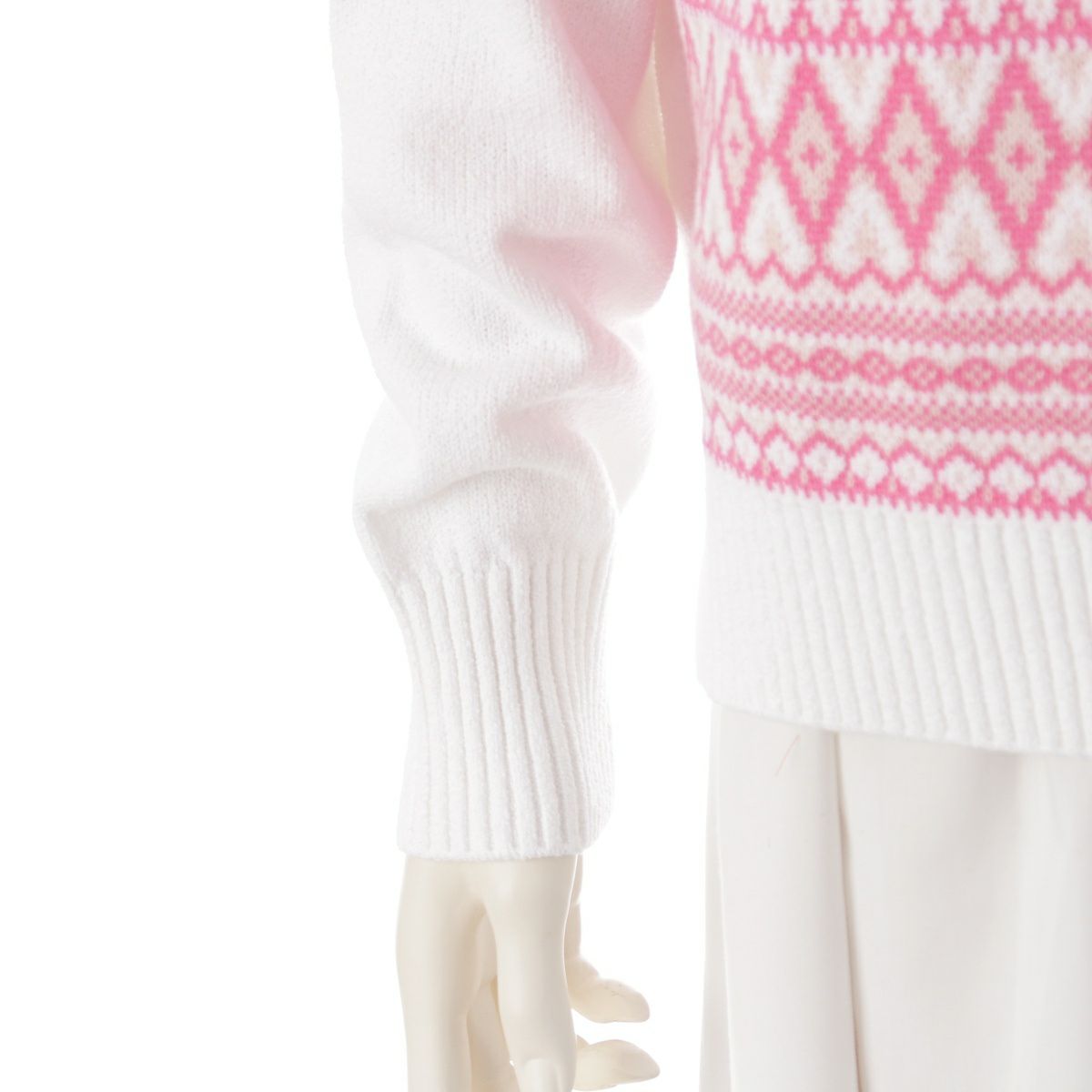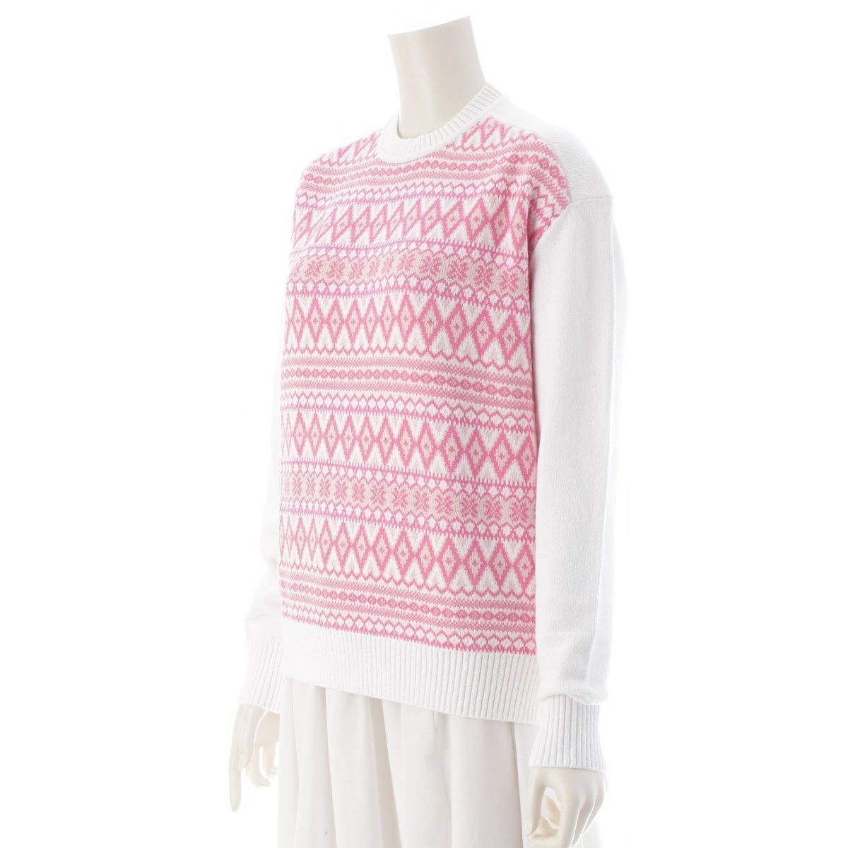 ドゥロワー コットン ナイロン カシミヤ 9G フェアアイル ニット トップス 6513-199-1082 ピンク×ホワイト ‐