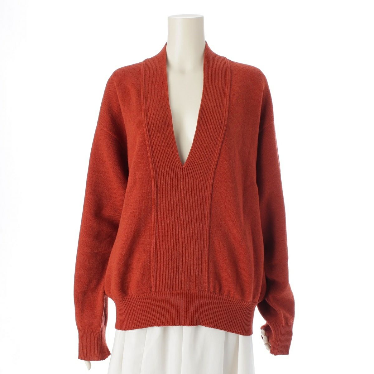 イッセイミヤケ ウール カシミヤ オープンネック Vネック セーター ME13KN034 オレンジ M