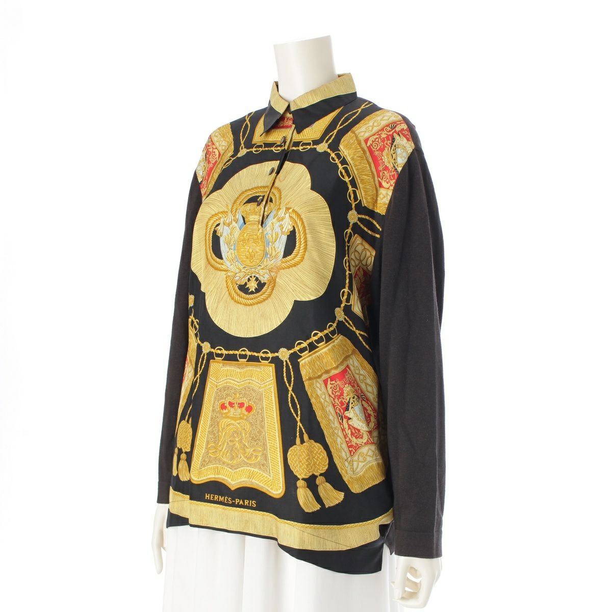 エルメス シルク コットン カシミヤ混 シャツ 切替デザイン ニット トップス マルチカラー M