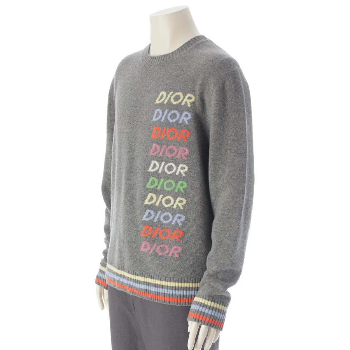 ディオール 24年 ウール カシミヤ ロゴ セーター ニット トップス 413M649AT774 グレー マルチカラー M