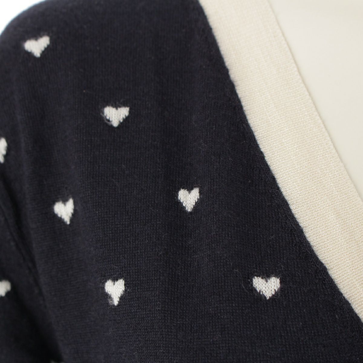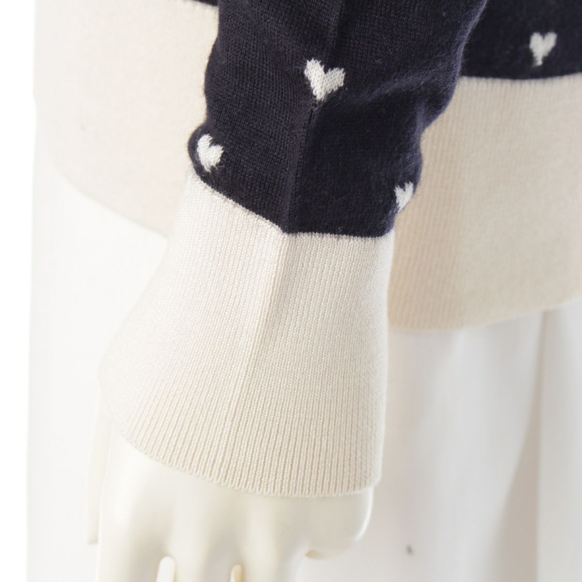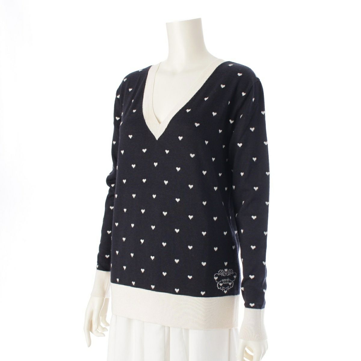 エルメス カシミヤ シルク ハート柄 Vネック ニット 長袖 セーター トップス ブラック ホワイト 34