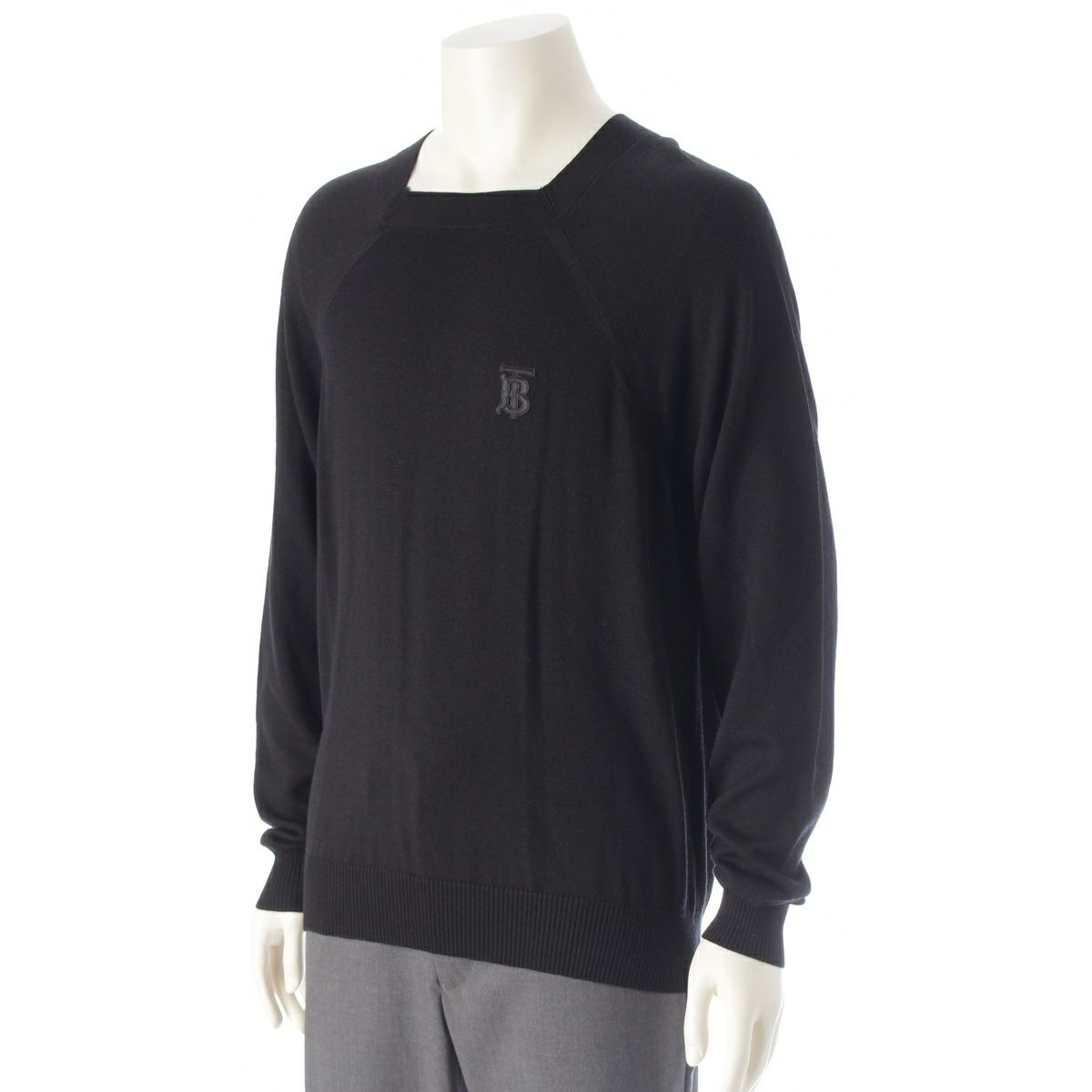 バーバリー ウール TBロゴ ニット スクエアネック 長袖 セーター プルオーバー トップス 8016992 ブラック L