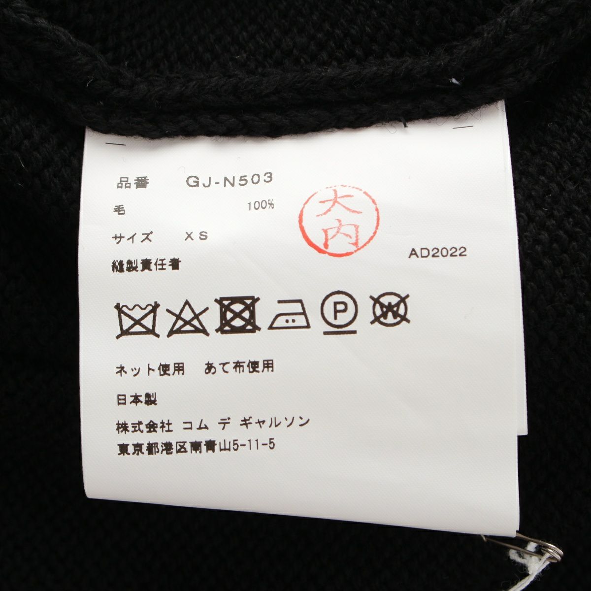 コムデギャルソン AD2022 22AW ウール アウトシーム ニットトップス セーター GJ-N503 ブラック XS