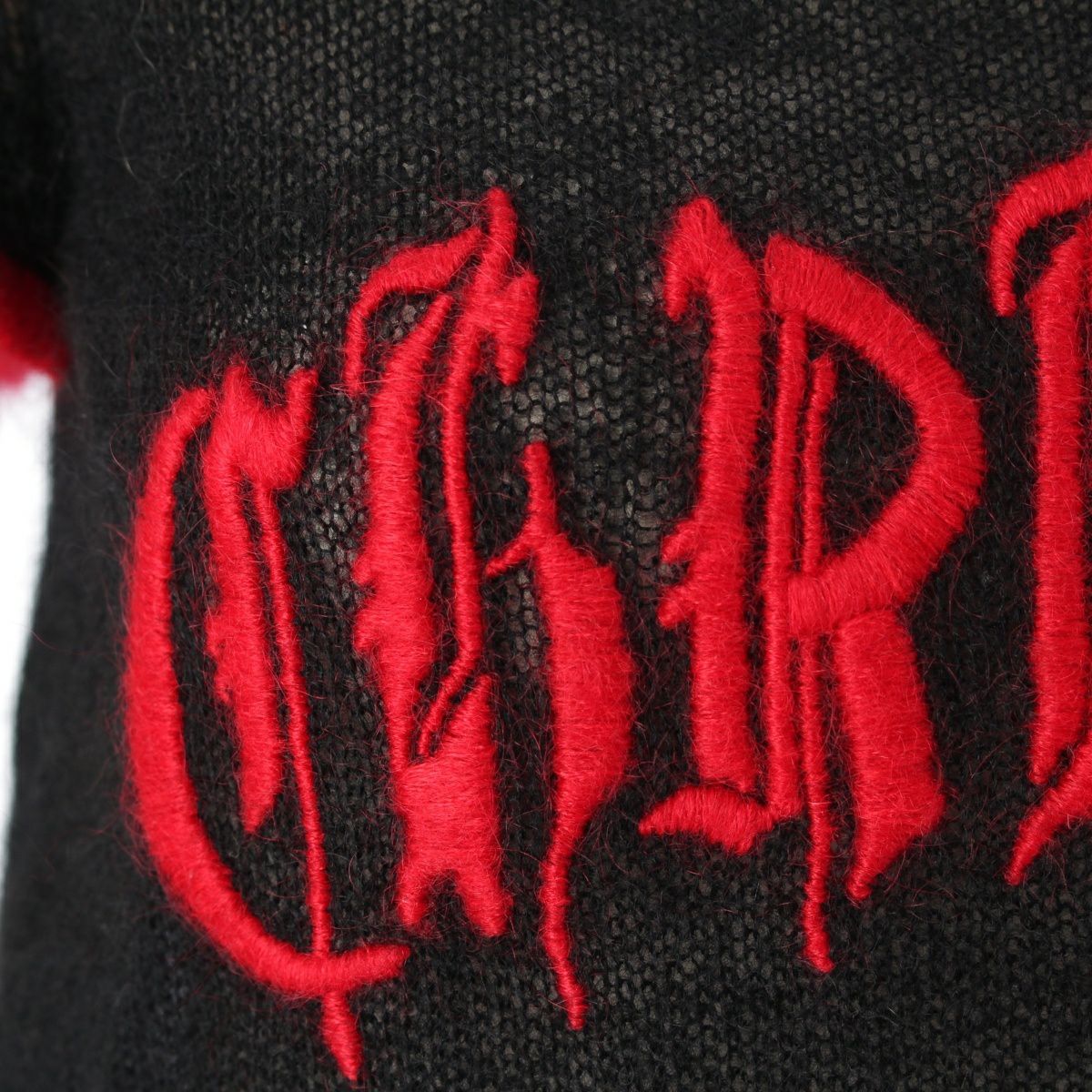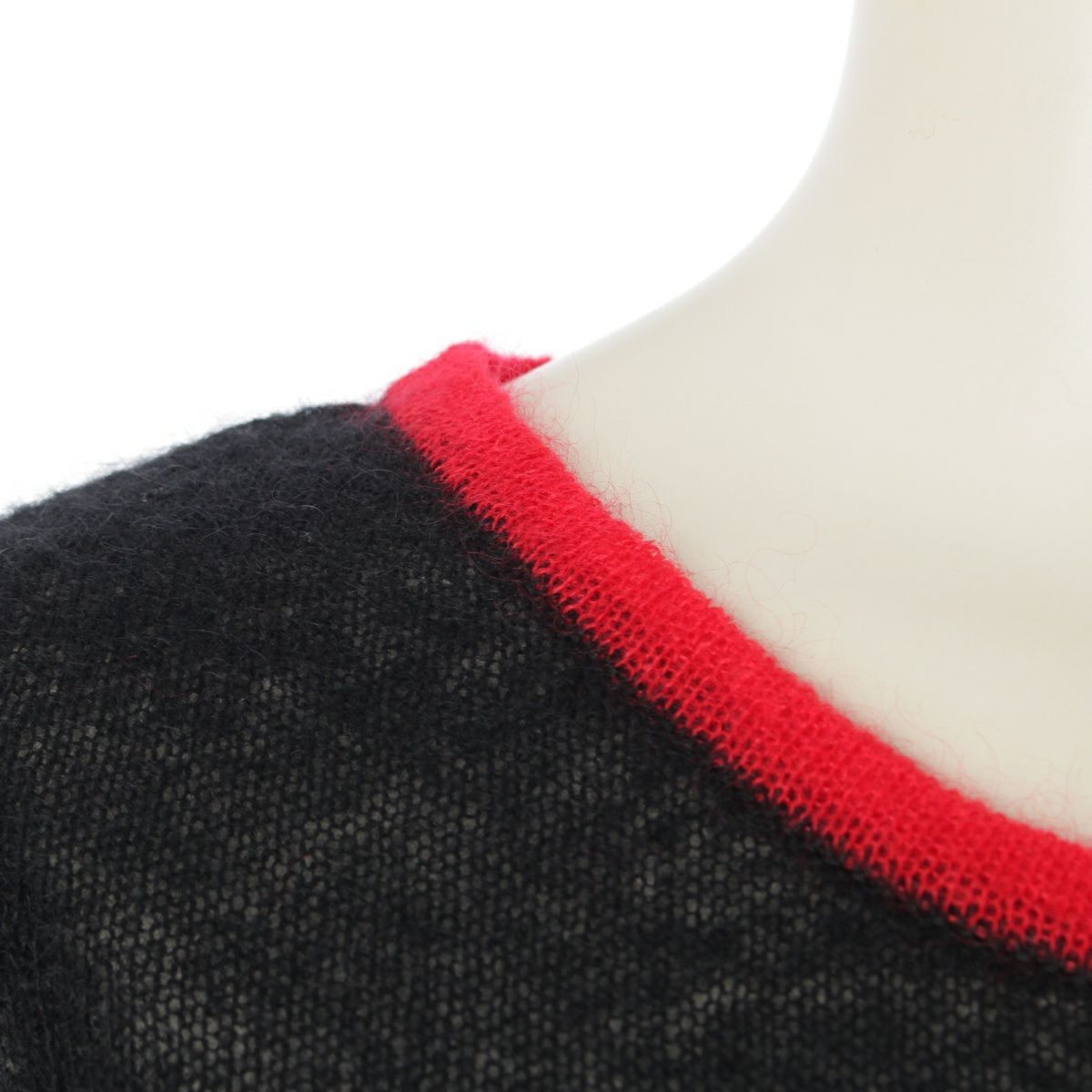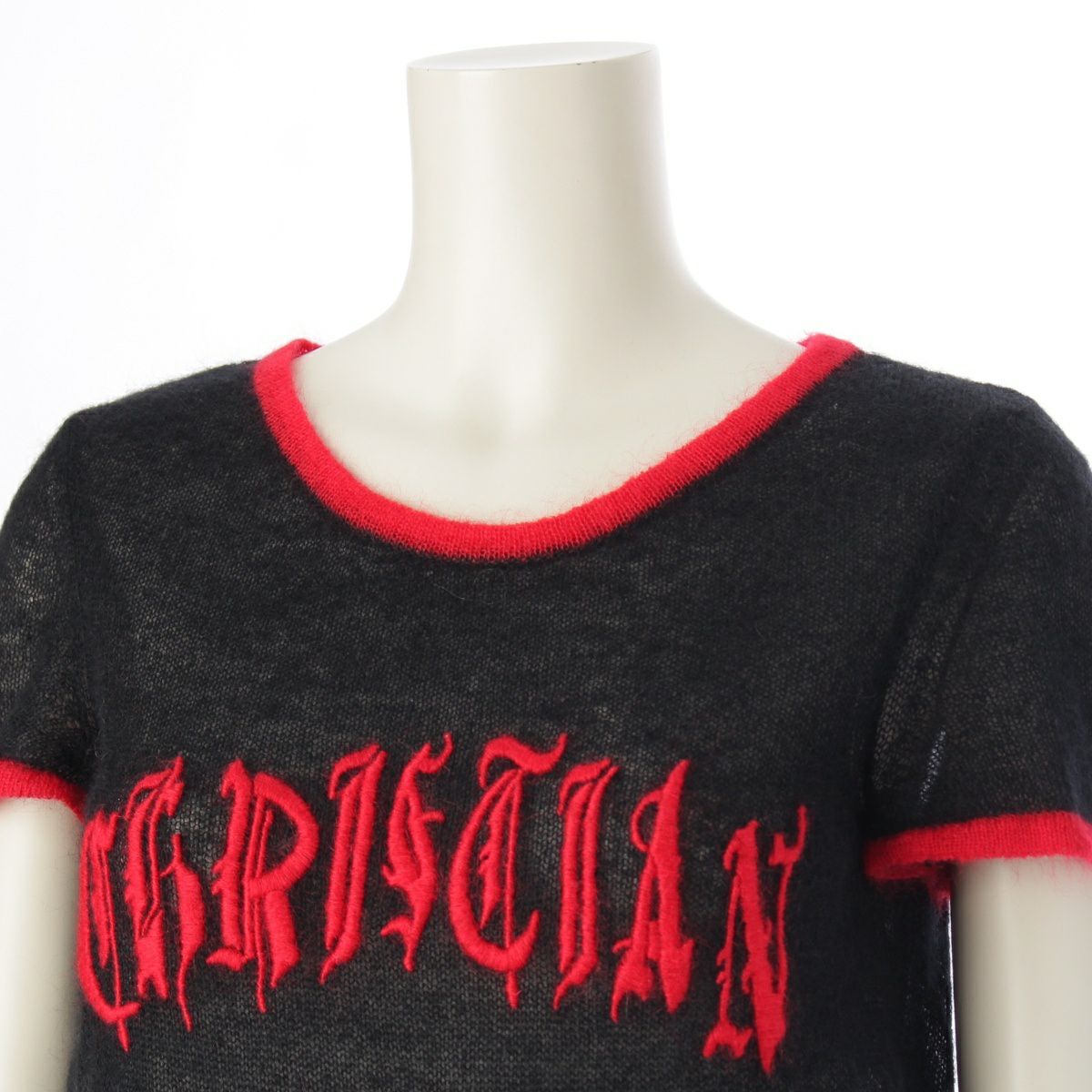 ディオール 02SS モヘア×ウール×ナイロン ロゴ刺繍 半袖 セーター ニット トップス 2A13055070 ブラック×レッド 38