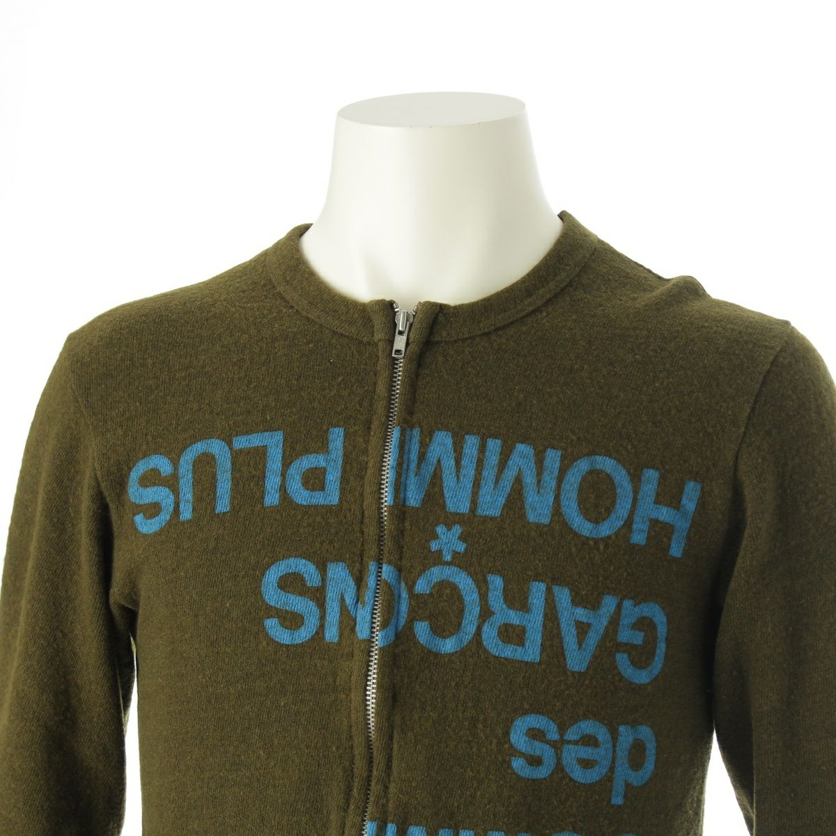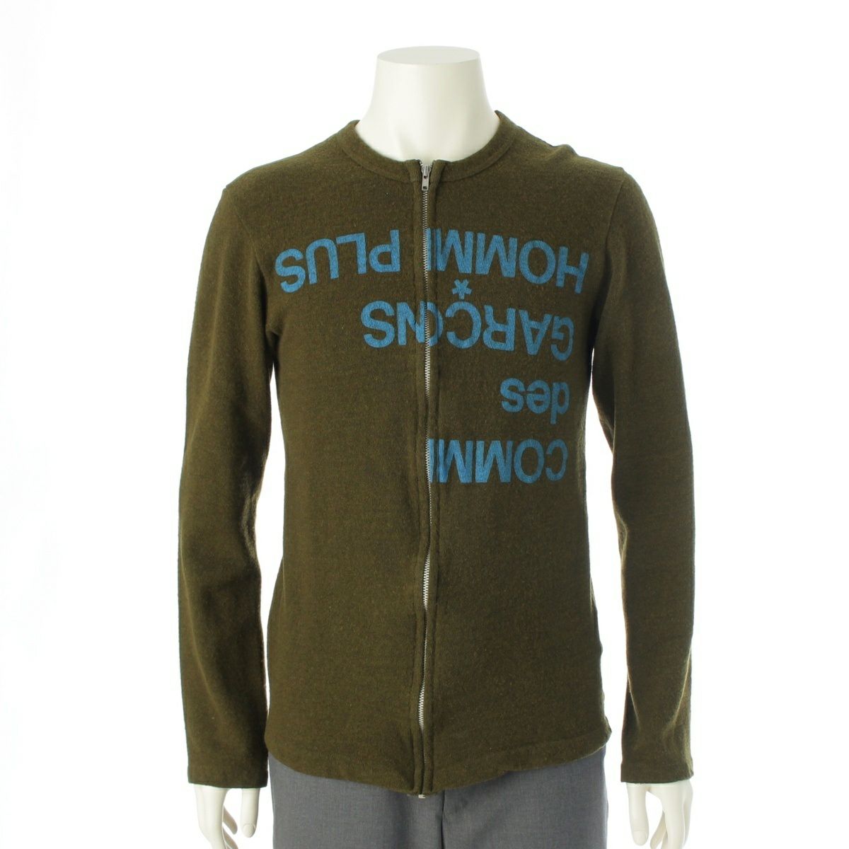 コムデギャルソンオムプリュス 99AW ロゴ ジップアップ ニット PT040440 カーキ