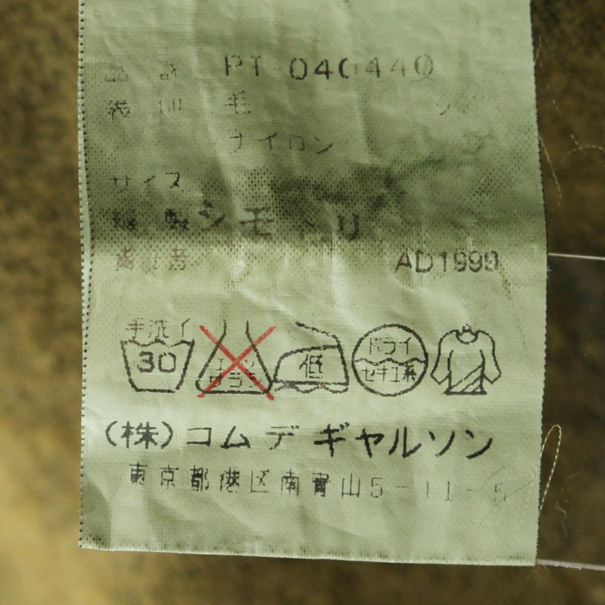 素材組成表示タグあり(印字薄れにより読み取り不可)