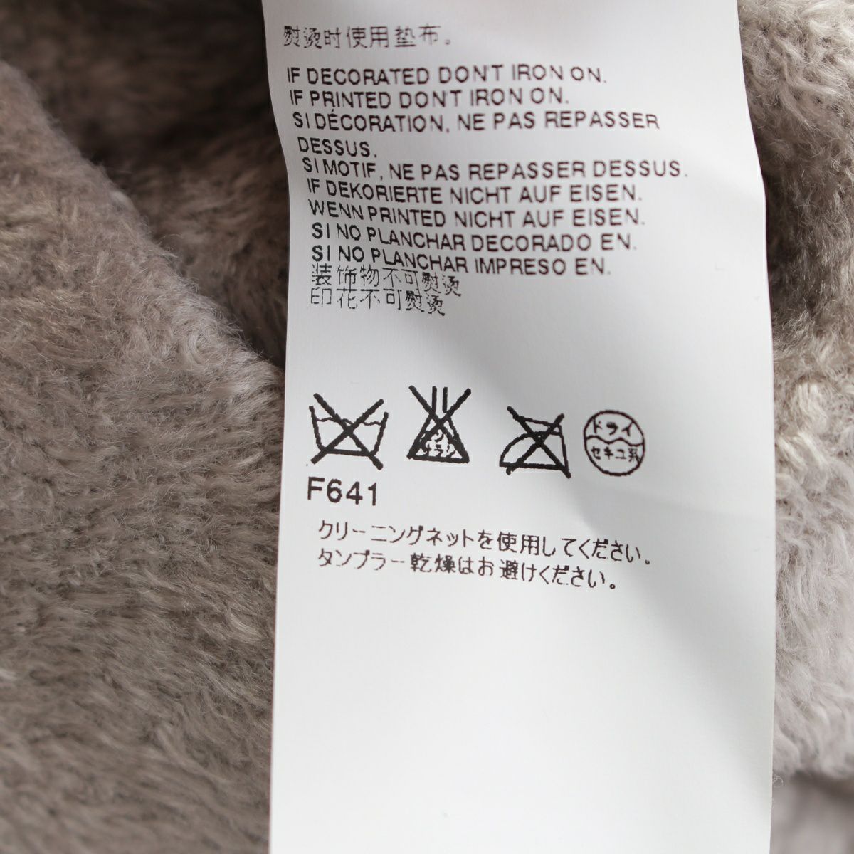 ダメージ箇所: 裾に型崩れ、前身ごろに毛羽立ち、柔軟剤のようなニオイ