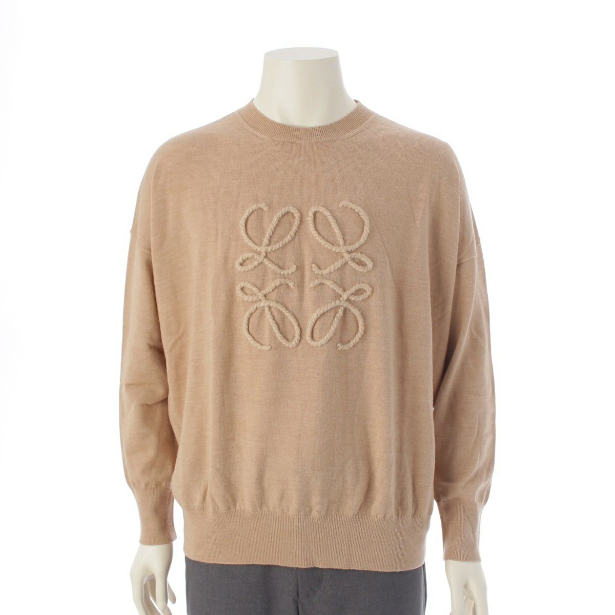 ロエベ ウール アナグラム 刺繍 クールネック セーター ニット トップス ベージュ M