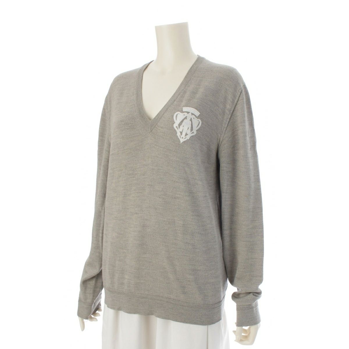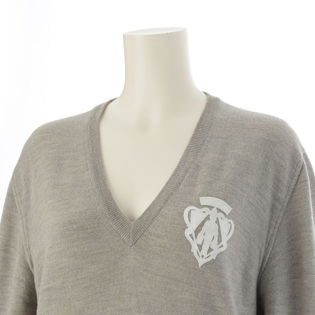 グッチ ウール トムフォード期 Vネック ロゴ ニット トップス グレー S