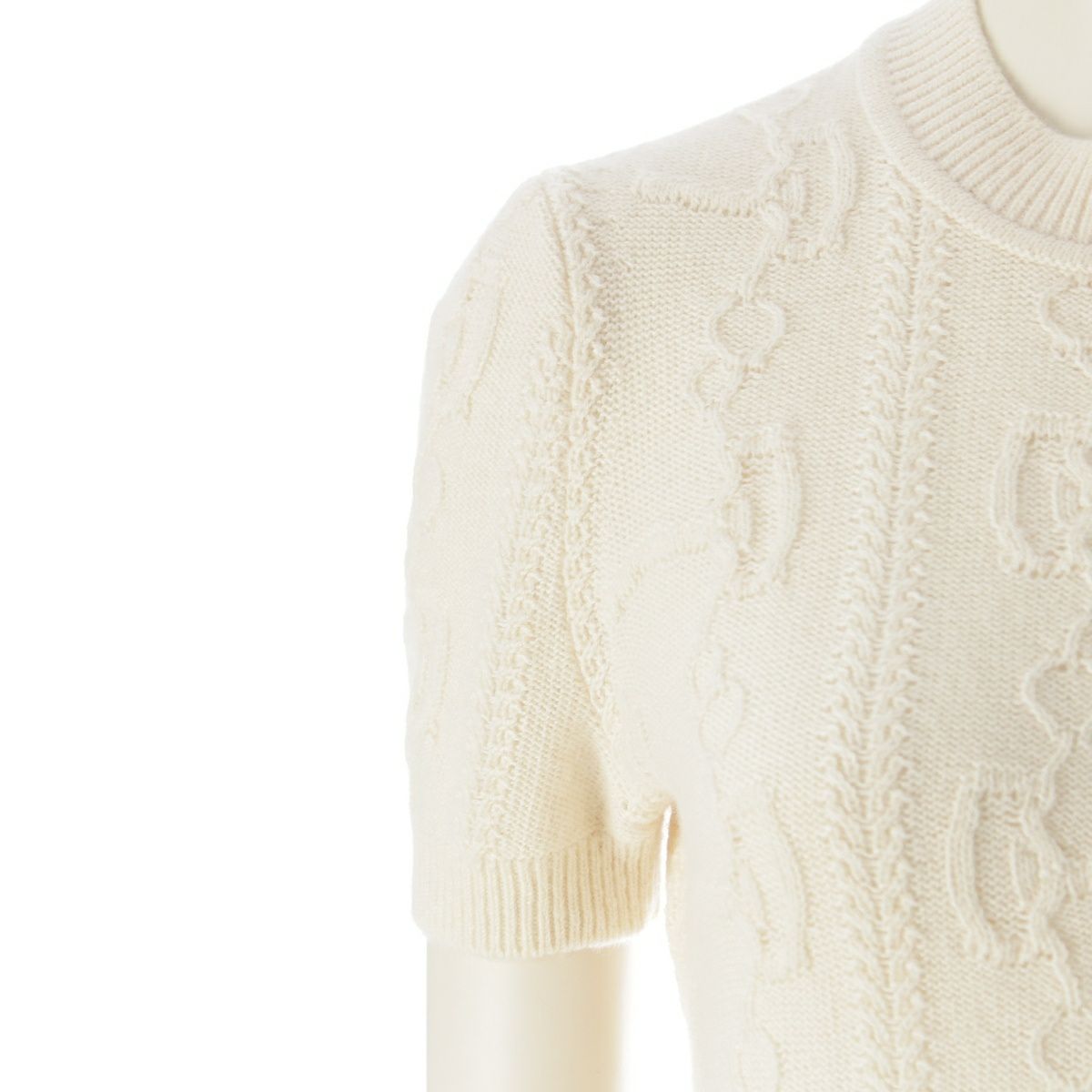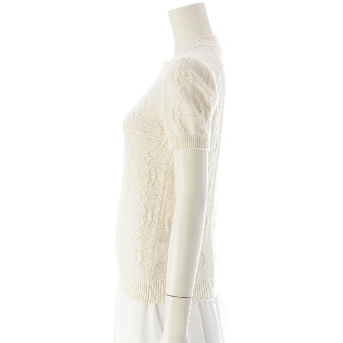 エルメス 22AW 朝の散歩 ウール カシミヤ 半袖 ニット トップス 2H2666D6 アイボリー 36