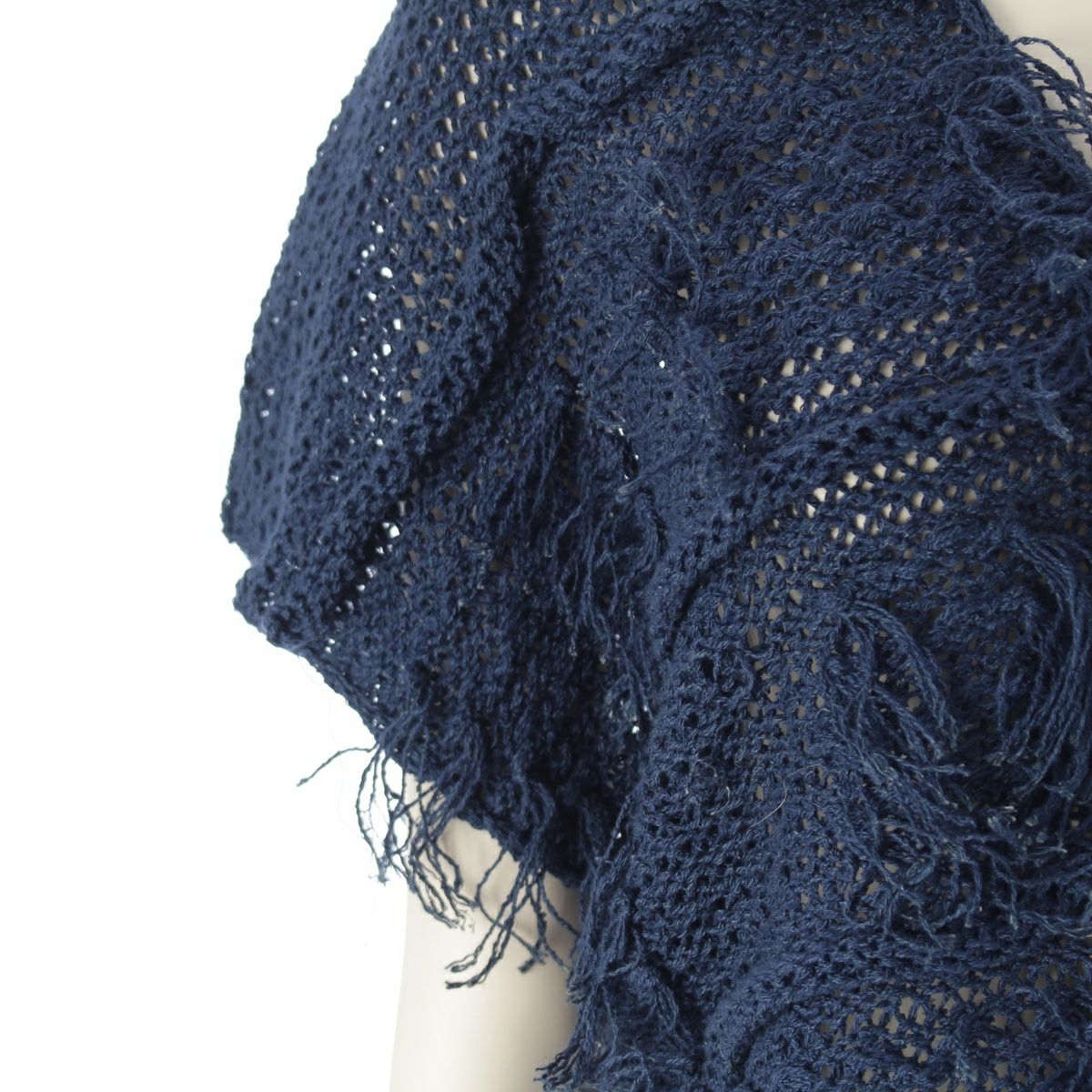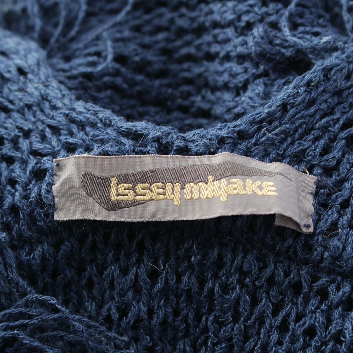 イッセイミヤケ 80s 1981年 麻 筆タグ ノースリーブ フリンジ 変形 トップス ニット ネイビー M