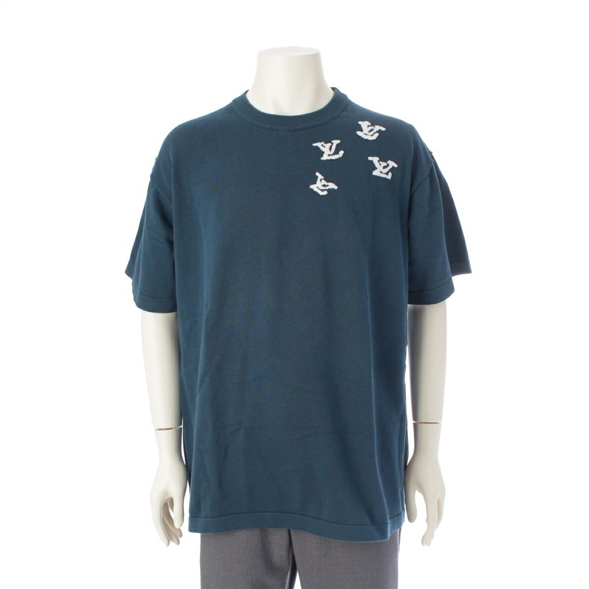 ルイヴィトン 22AW コットン LVロゴ ジャズトランペッター 半袖 セーター ニット トップス RM222V ブルー XL