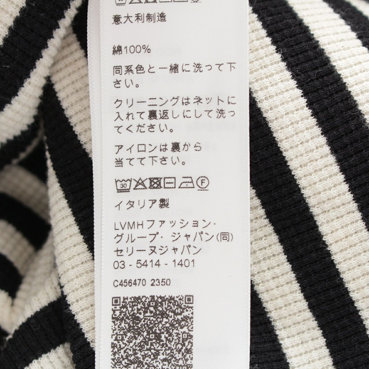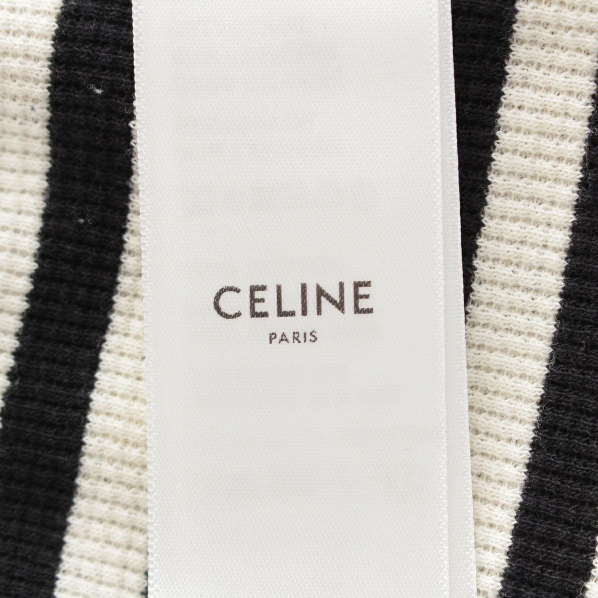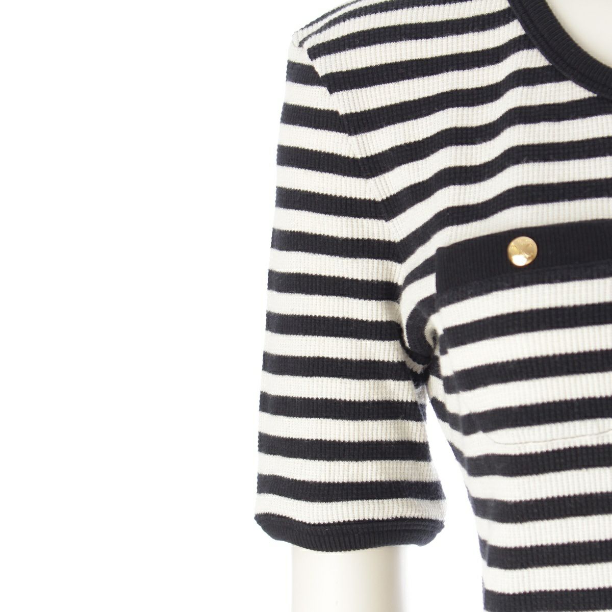 セリーヌ エディ期 2023 コットン トリオンフボタン ボーダー 半袖 ニット トップス 2X46H136K ブラック ホワイト S
