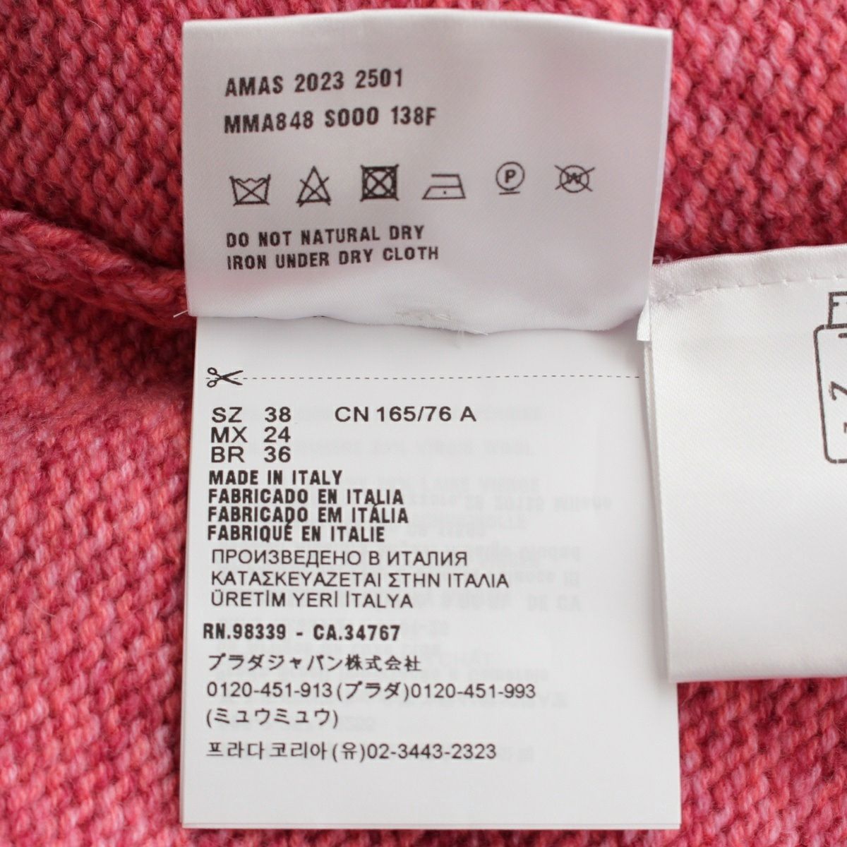 ミュウミュウ 23年 カシミヤ ウール タートルネック ニット トップス セーター MMA848 ピンク 38