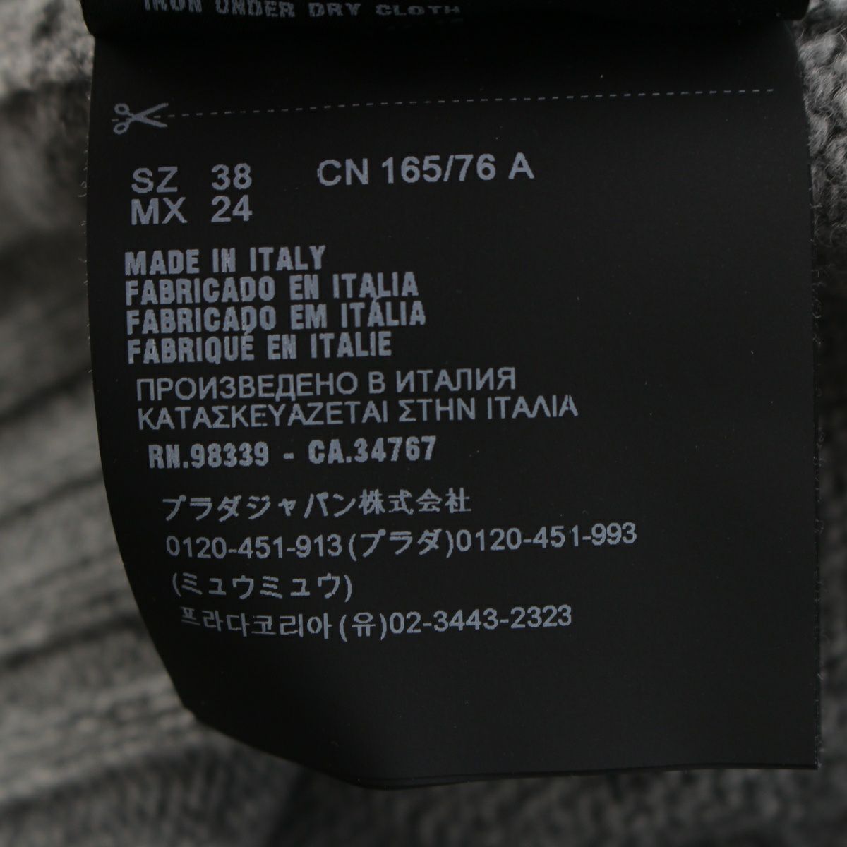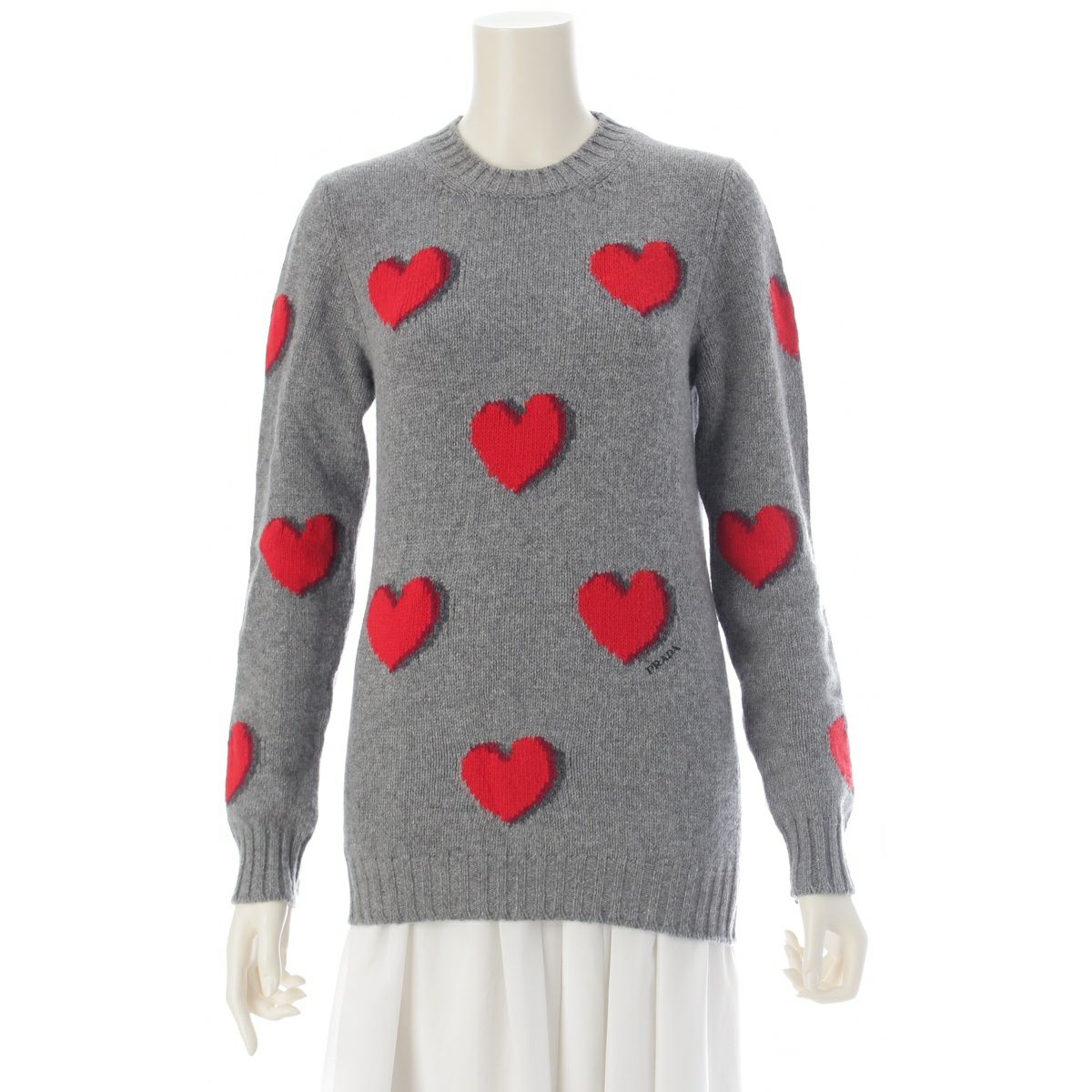 プラダ ウール カシミヤ ハート クルーネック セーター 長袖 ニット トップス P24Z0C グレー 38
