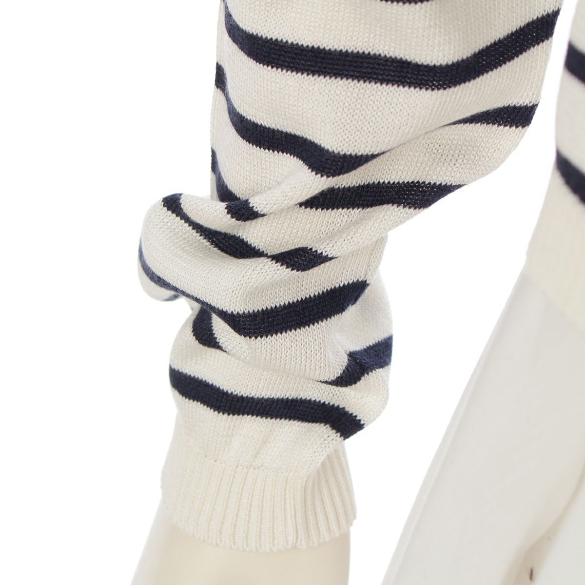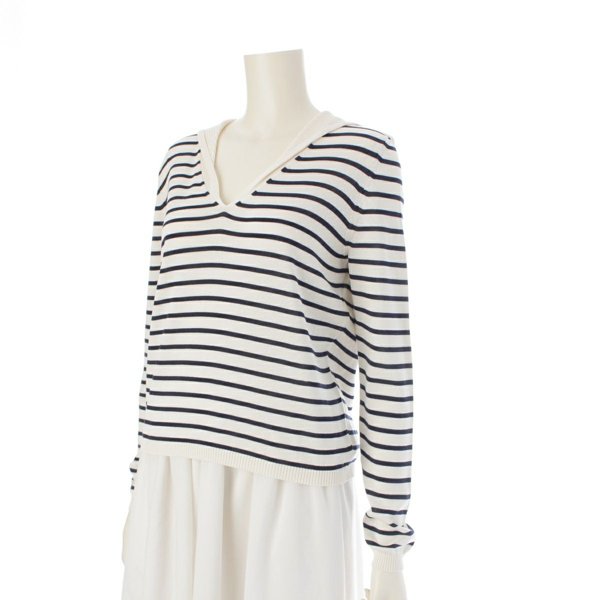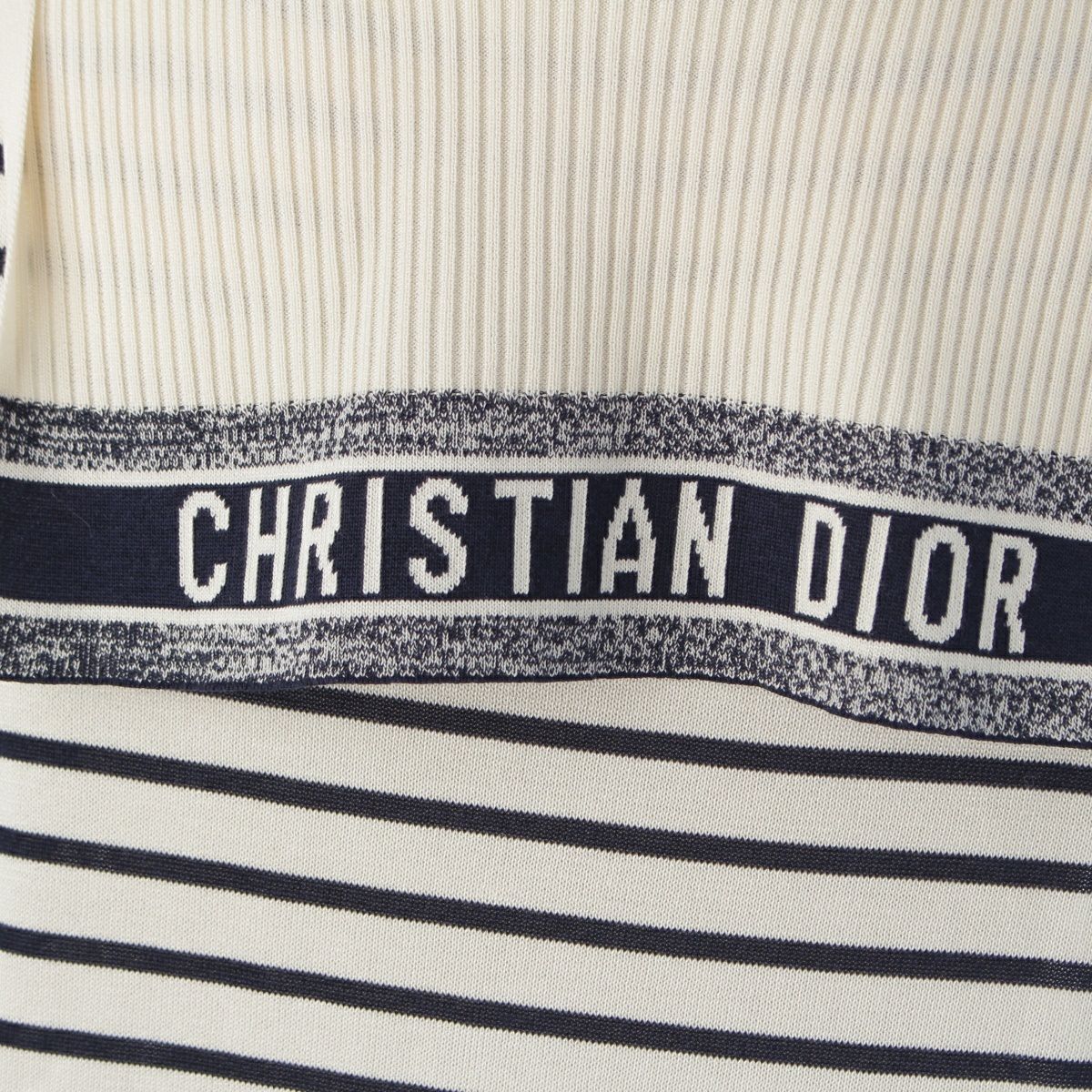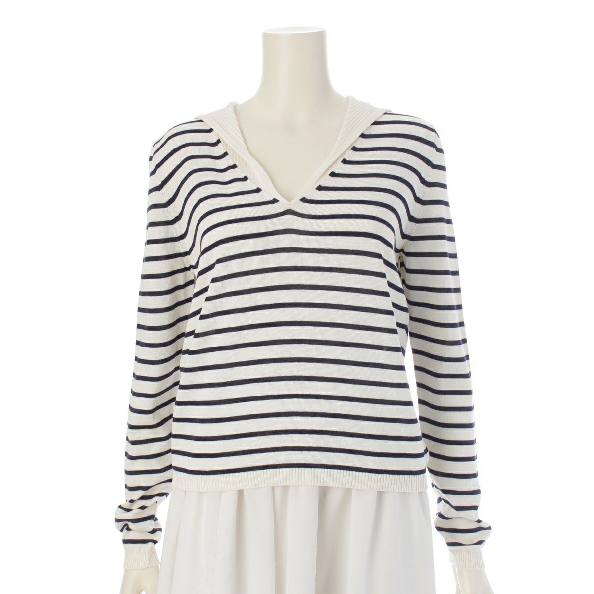 クリスチャンディオール コット ンシルク セーラーカラー ボーダー ロゴ ニット セーター トップス 144S49AM603 オフホワイト 44