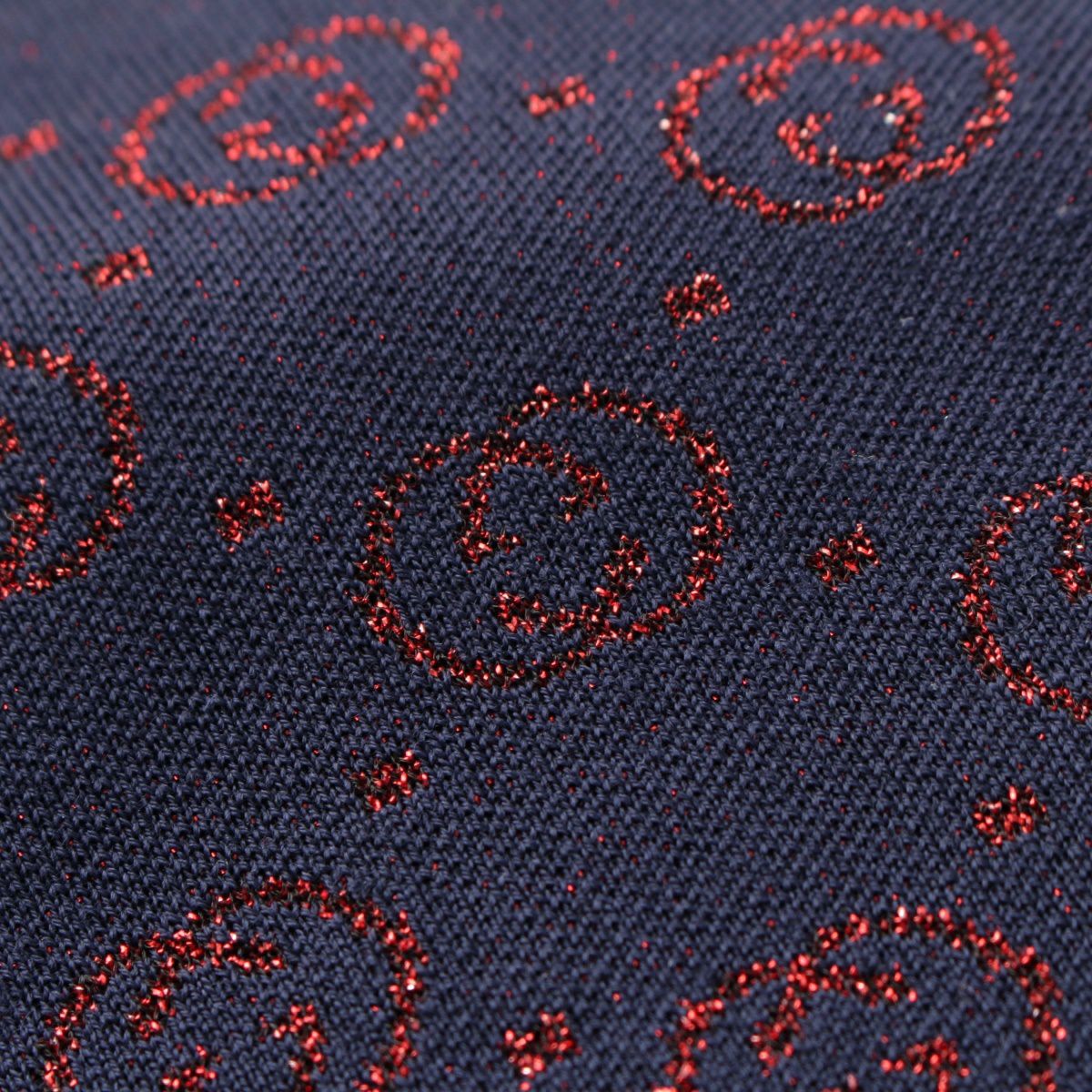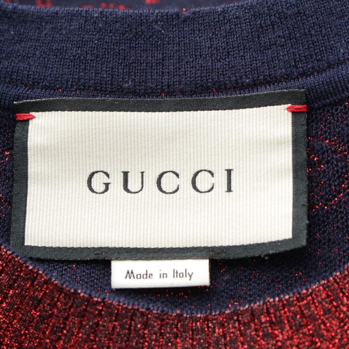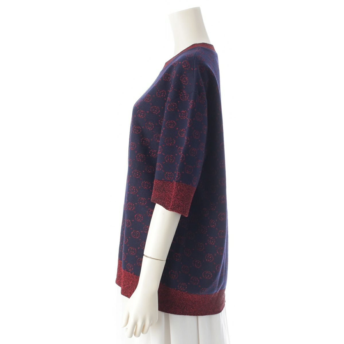 グッチ コットン インターロッキングG ラメ ニット 半袖 ニット 605920 ネイビー レッド L