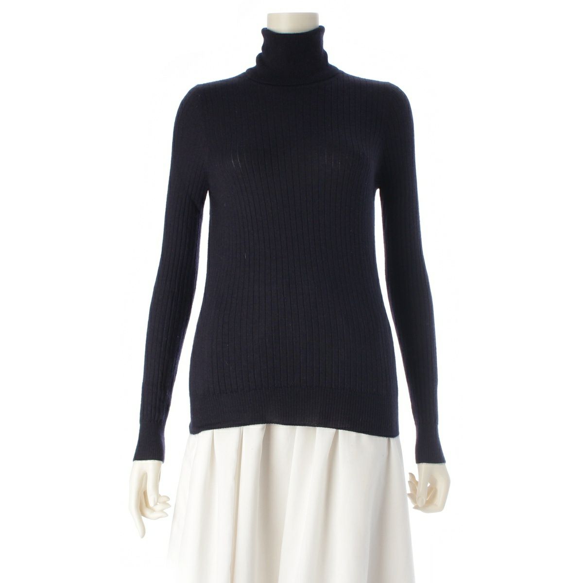 ドゥロワー カシミヤ シルク 18G リブタートル ニット 6513-106-0582 ネイビー 2