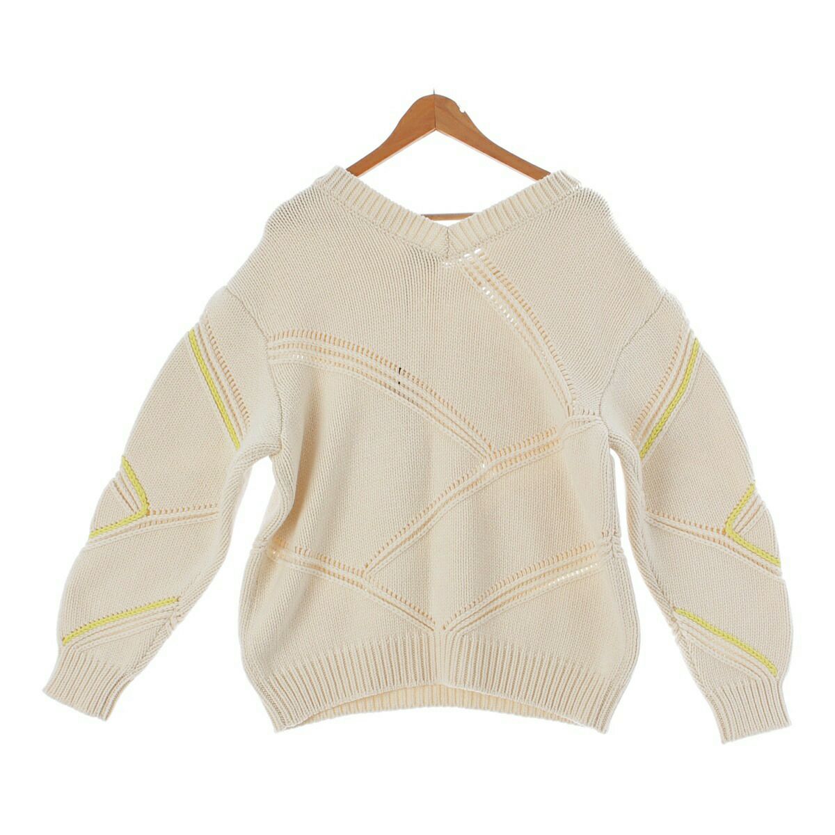 フェラガモ ガンチーニ ヴァージンウール Vネック ニットセーター オフホワイト M【中古】【正規品保証】