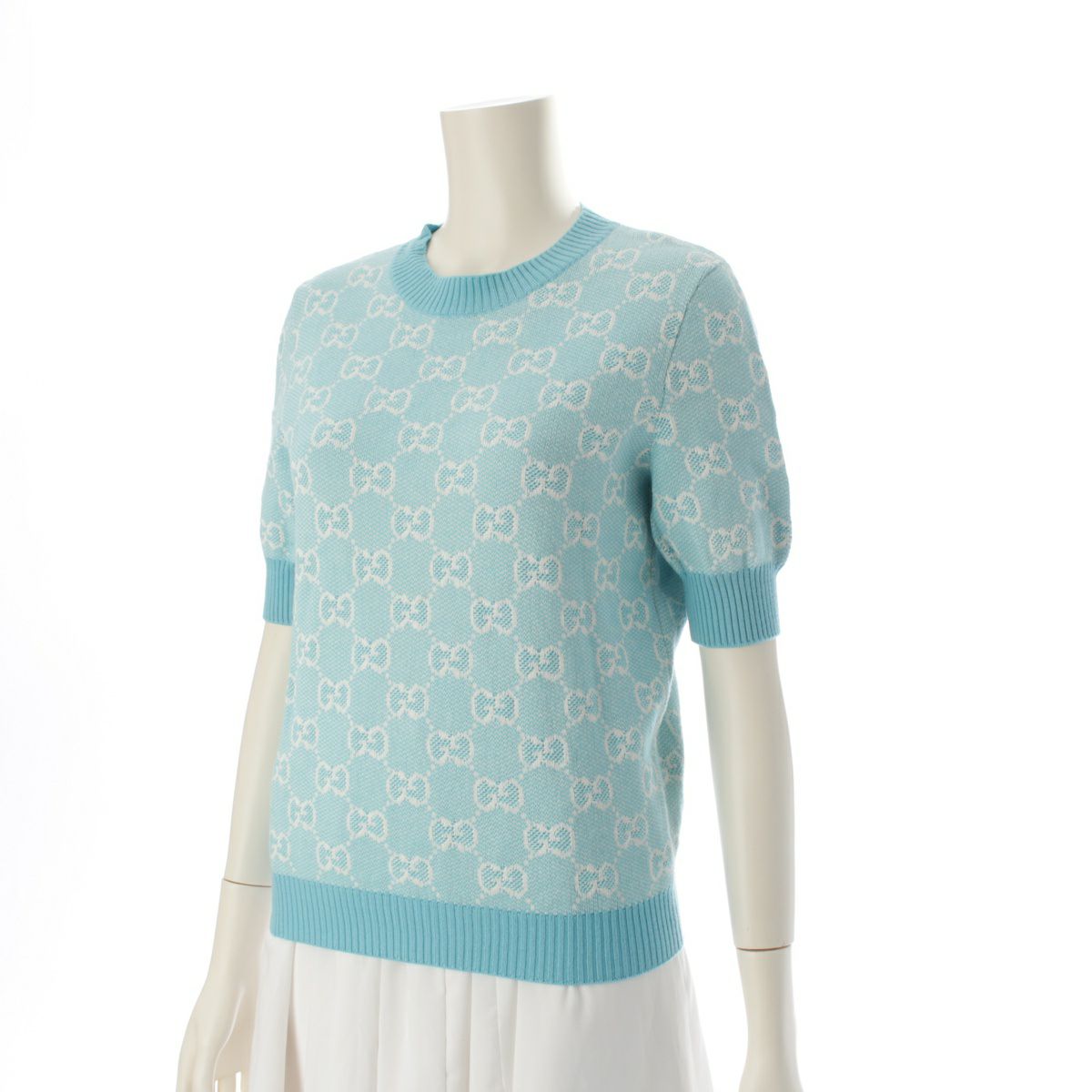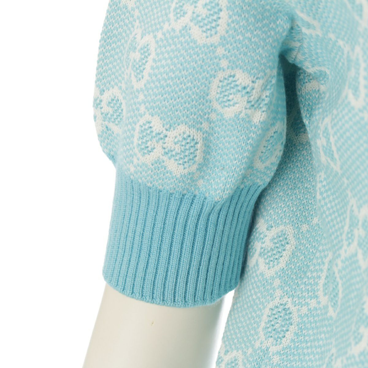 グッチ ウール コットン GGジャガード 半袖 ニット セーター トップス 629456 ブルー S