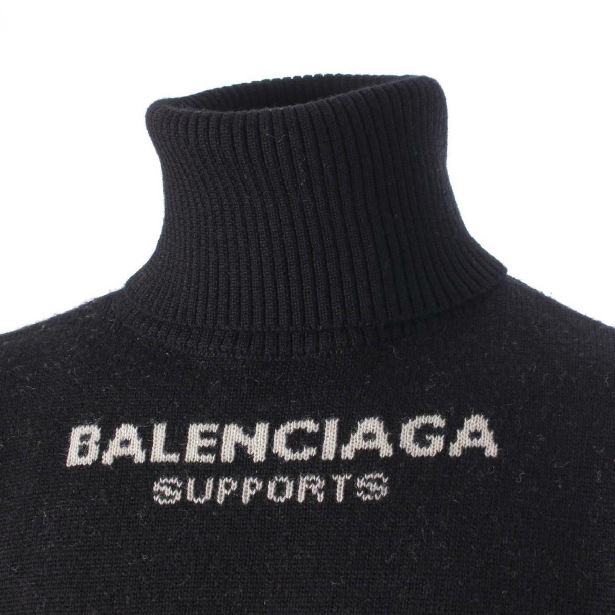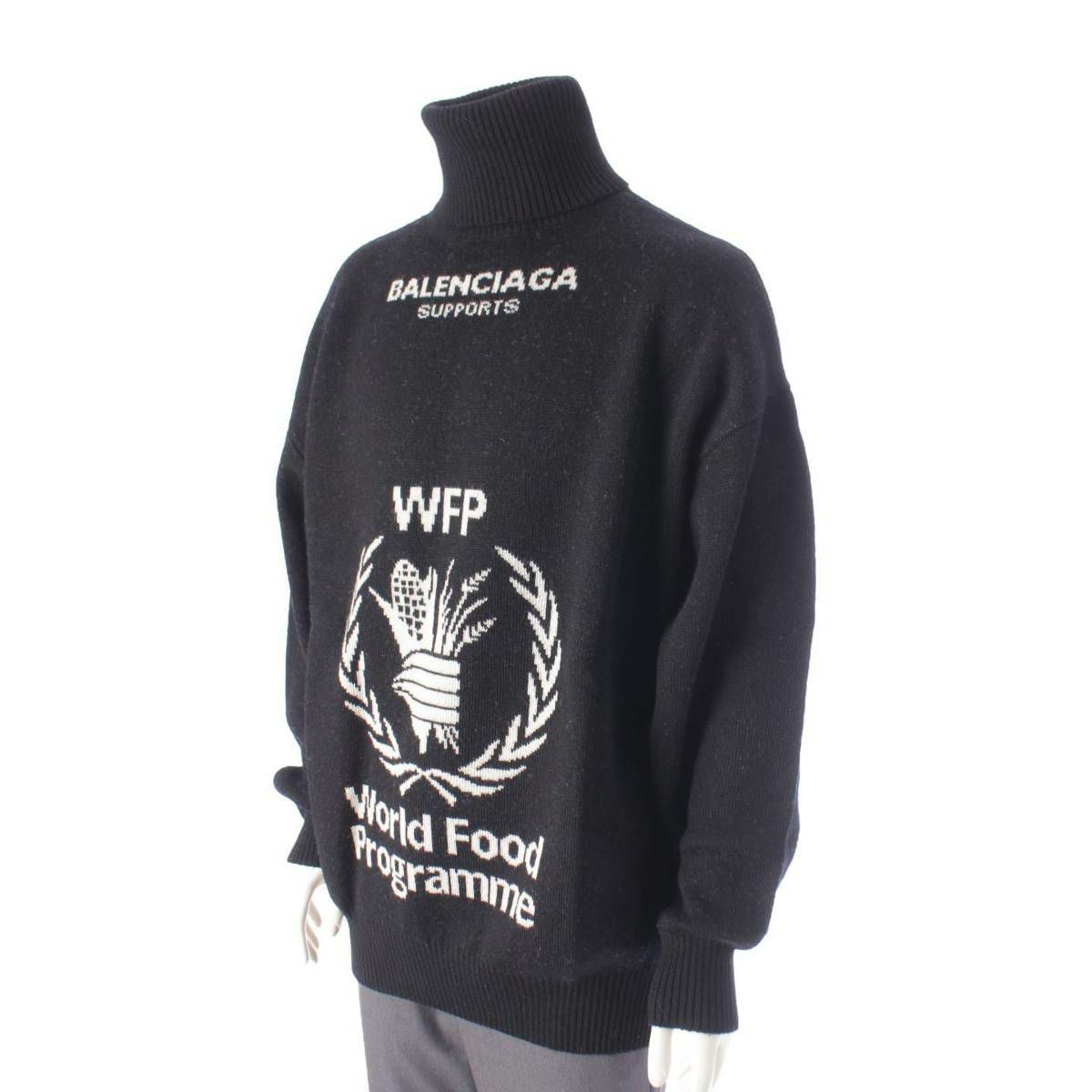 バレンシアガ メンズ 18年 WFP ロゴ タートルネック ウール ニット セーター 542703 ブラック XS